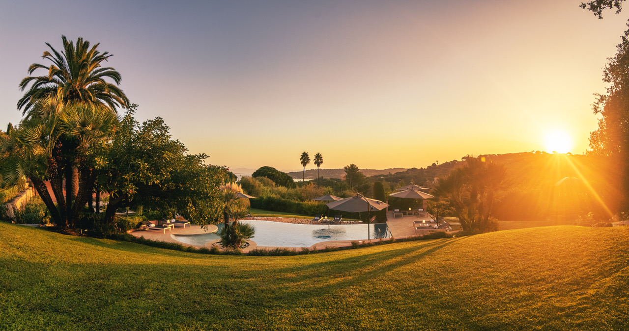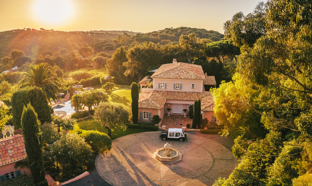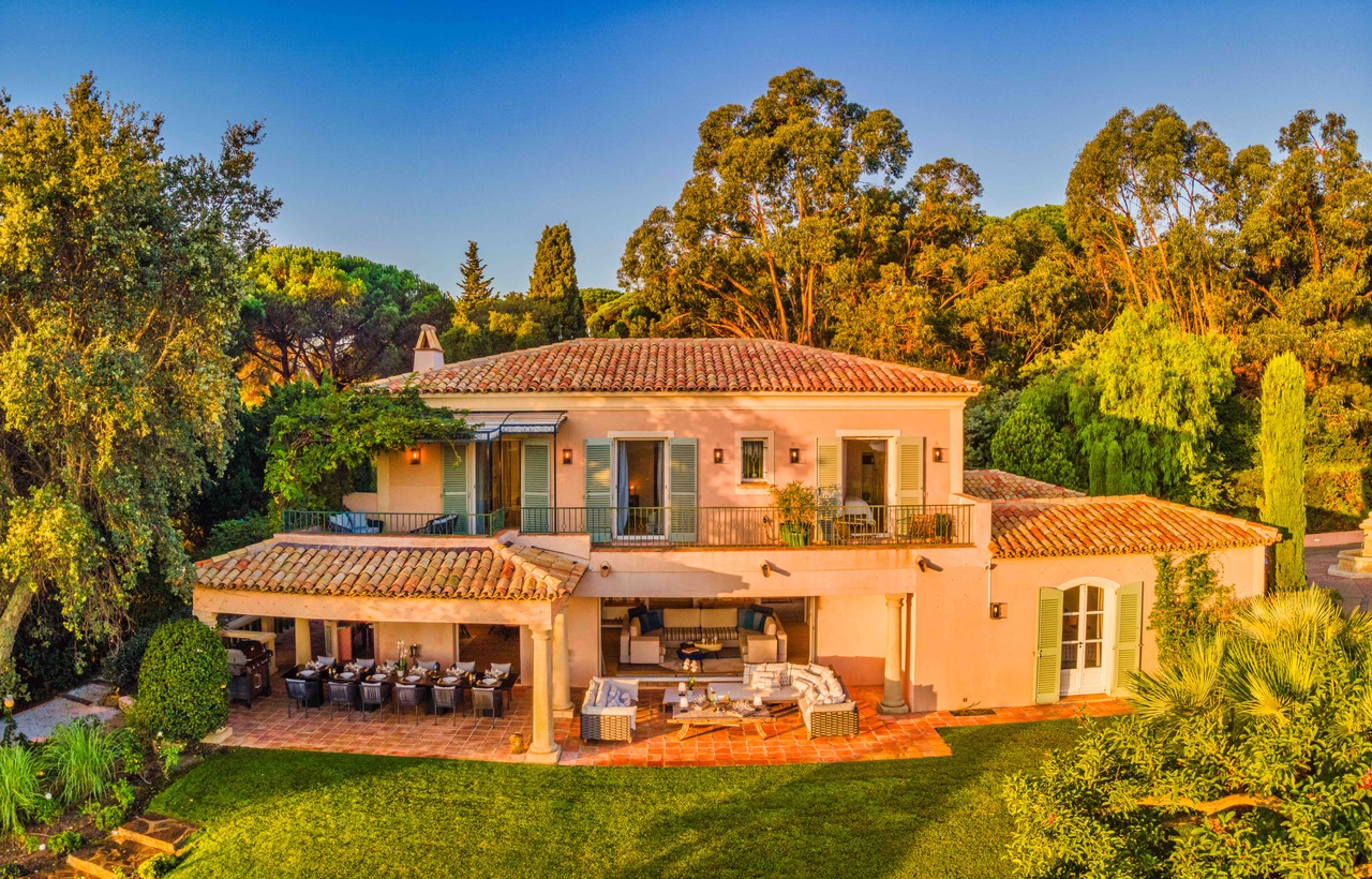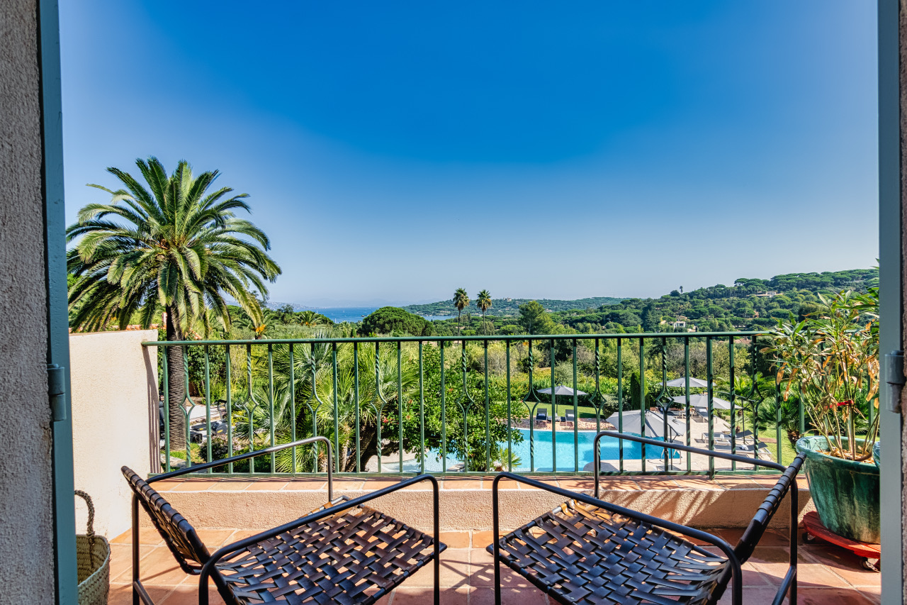 Cette sublime villa de luxe est nichée dans un écrin de verdure entre vignes et arbres méditerranéens, proche de Saint-Tropez. Elle profite d’une vue sur la baie des Canoubiers et sur le Château Borelli. Depuis certaines pièces, une jolie vue s’offre à vous avec les palmiers et les pins en premier plan, et la mer à l’horizon.