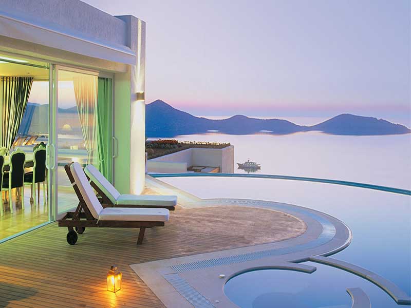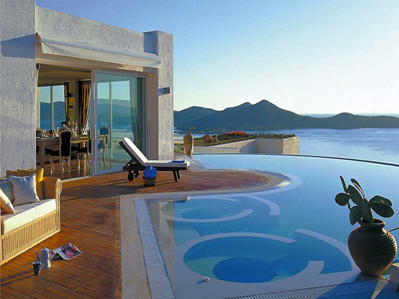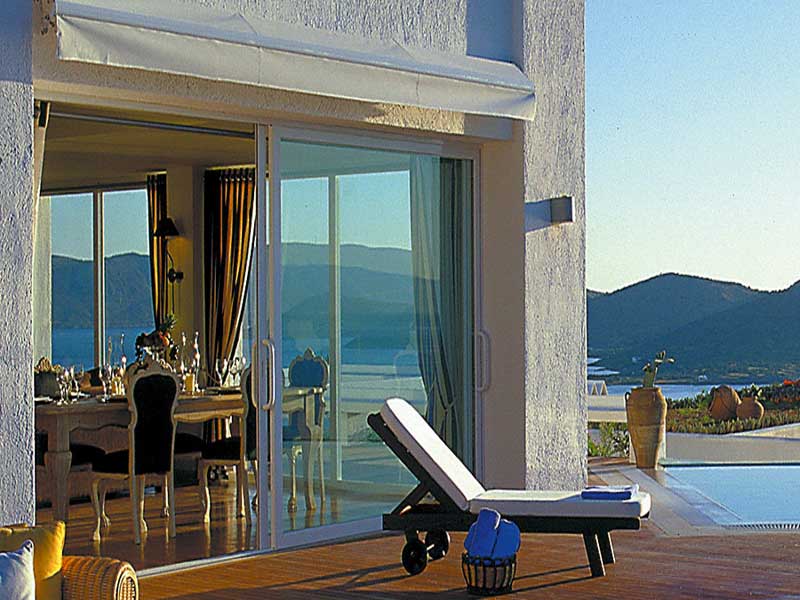 La villa est située juste au dessus de la renommée Baie d'Elounda, dans un domaine offrant aux hôtes un service luxueux haut de gamme. Sur les hauteurs, cette propriété sur deux niveaux a été construite afin d'apprécier les vues spectaculaires sur la mer et offrir un aménagement cinq étoiles. Sa magnifique piscine d'eau de mer (qui peut être chauffée) est entourée par un jardin verdoyant et dispose de deux jacuzzi. Cette même terrasse comprend un barbecue et un espace pour les repas très bien aménagé, ainsi qu'une douche extérieure séparée avec cabines et sauna.
