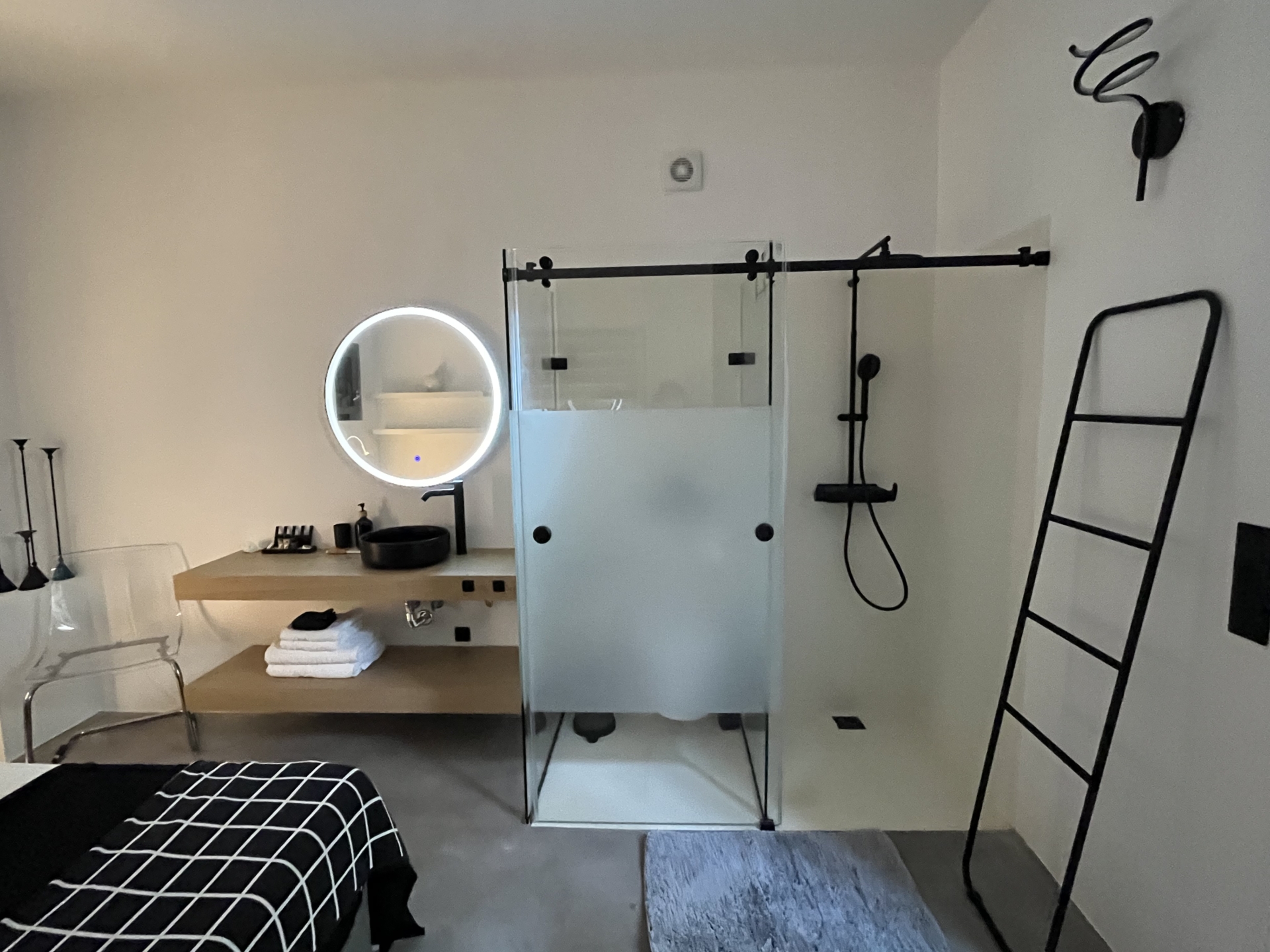 Chambre double avec lit 180, climatisation, vue mer et Salle de bain en suite