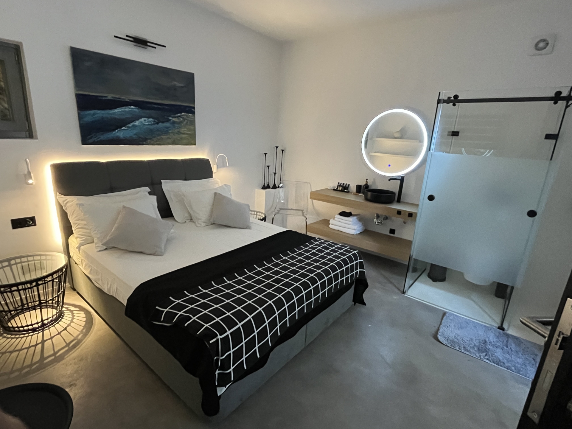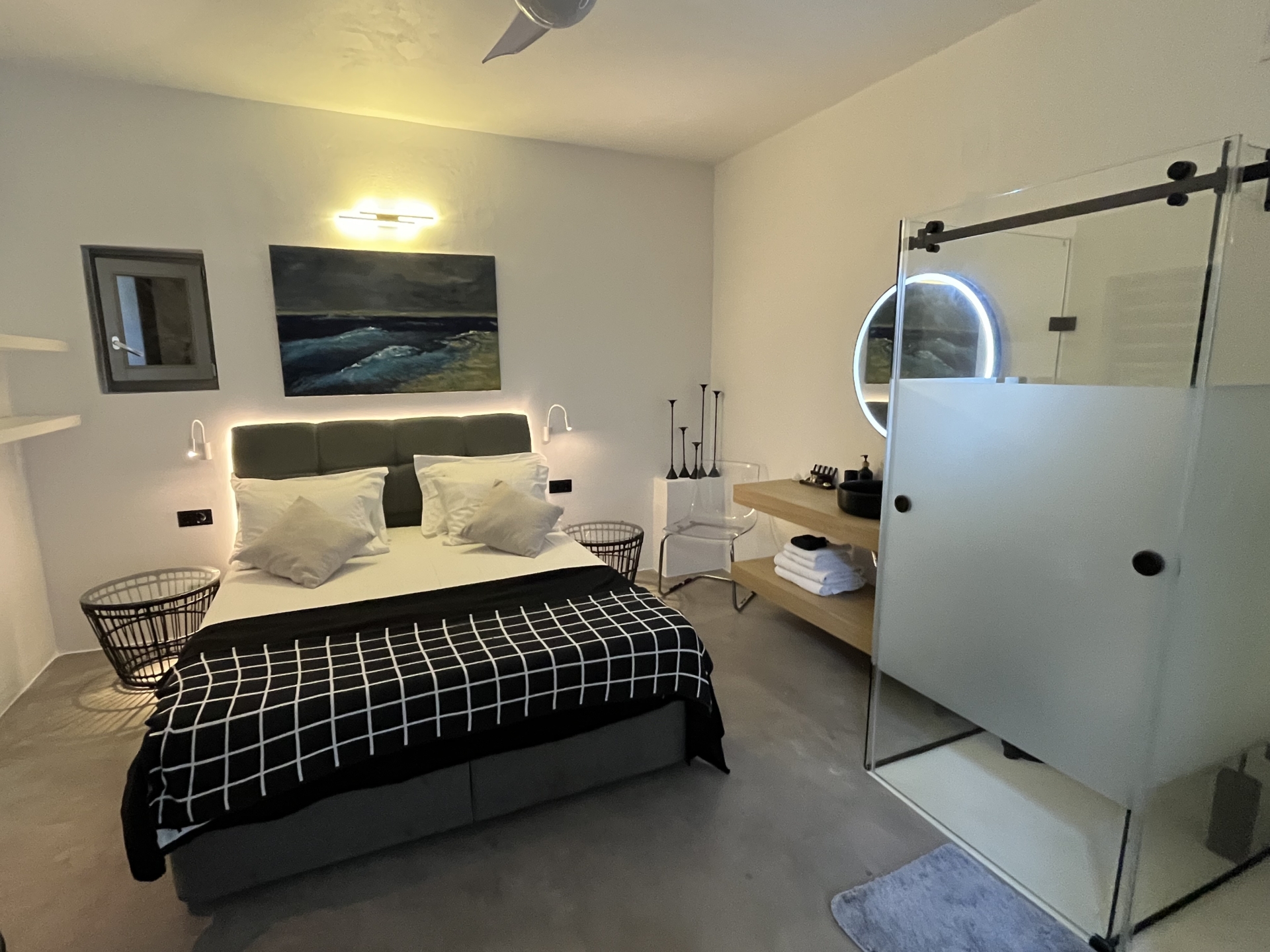 Chambre de Maître avec lit 180, vue mer, climatisation et Salle de bain en suite