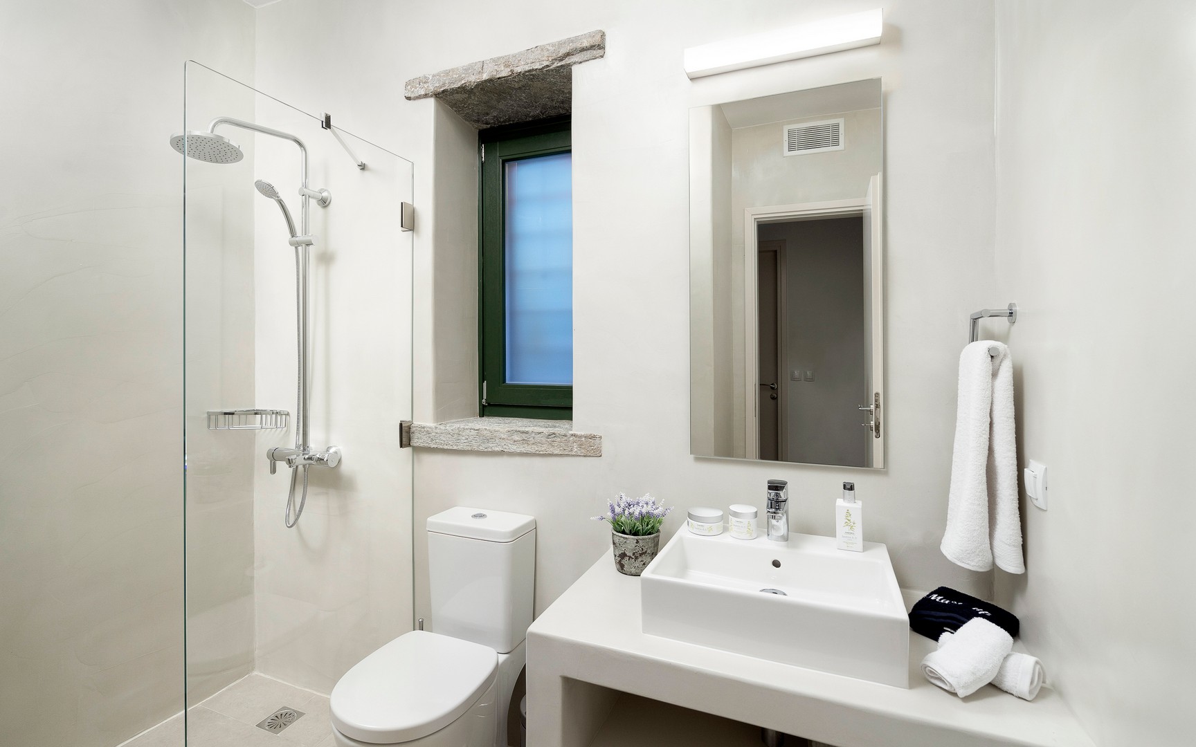 Chambre de Maître et Salle de bain en suite avec wc, fenêtre, douche, lavabo simple