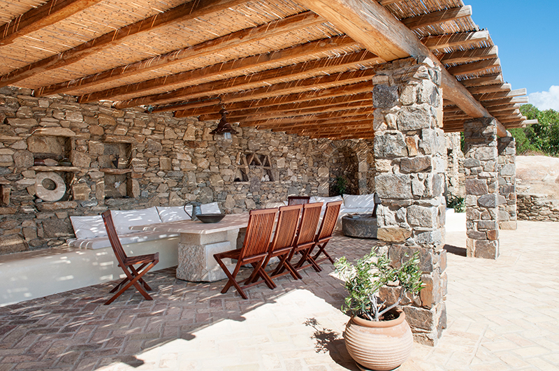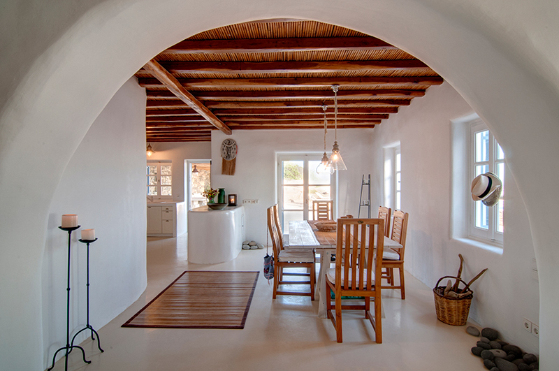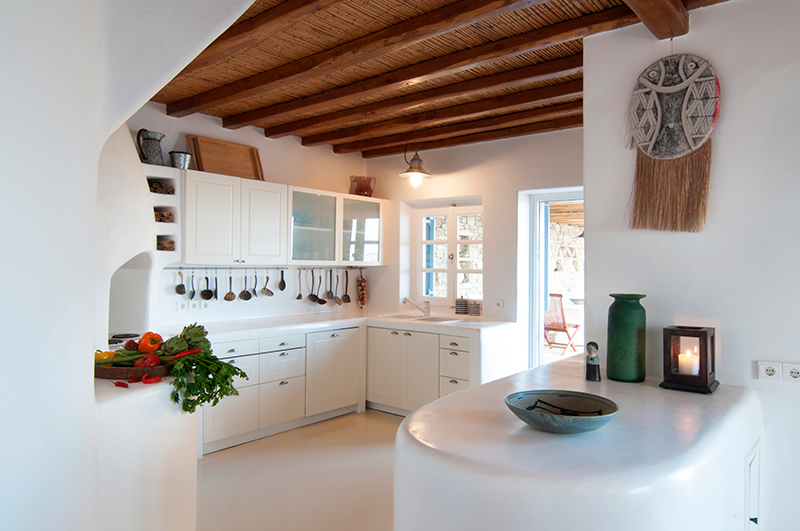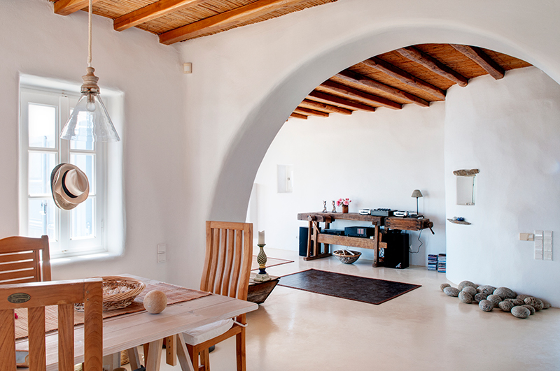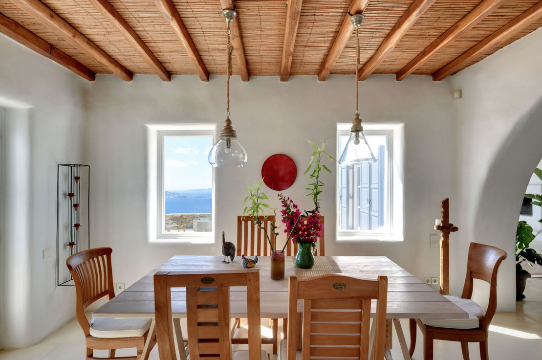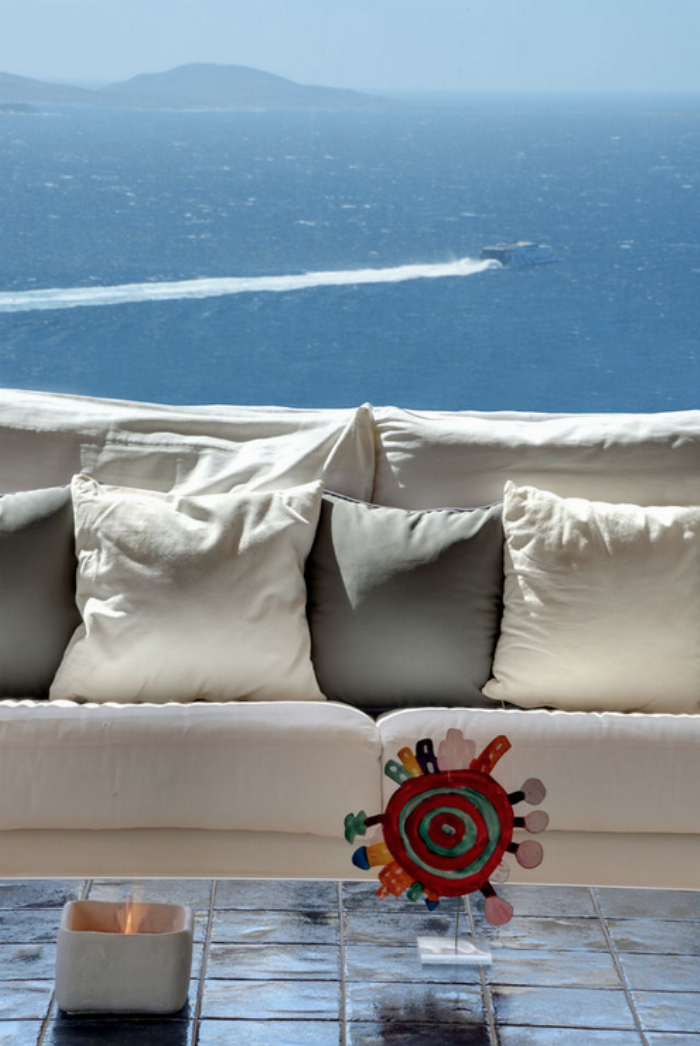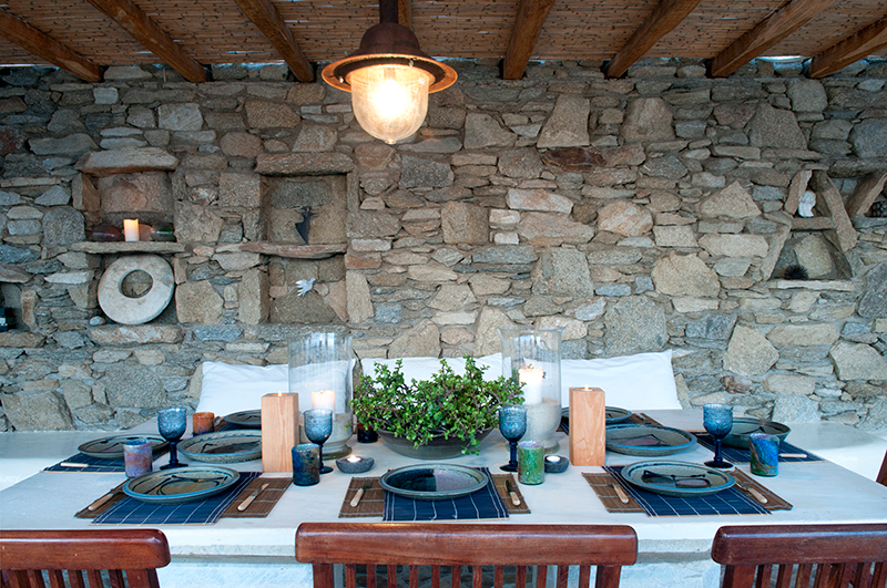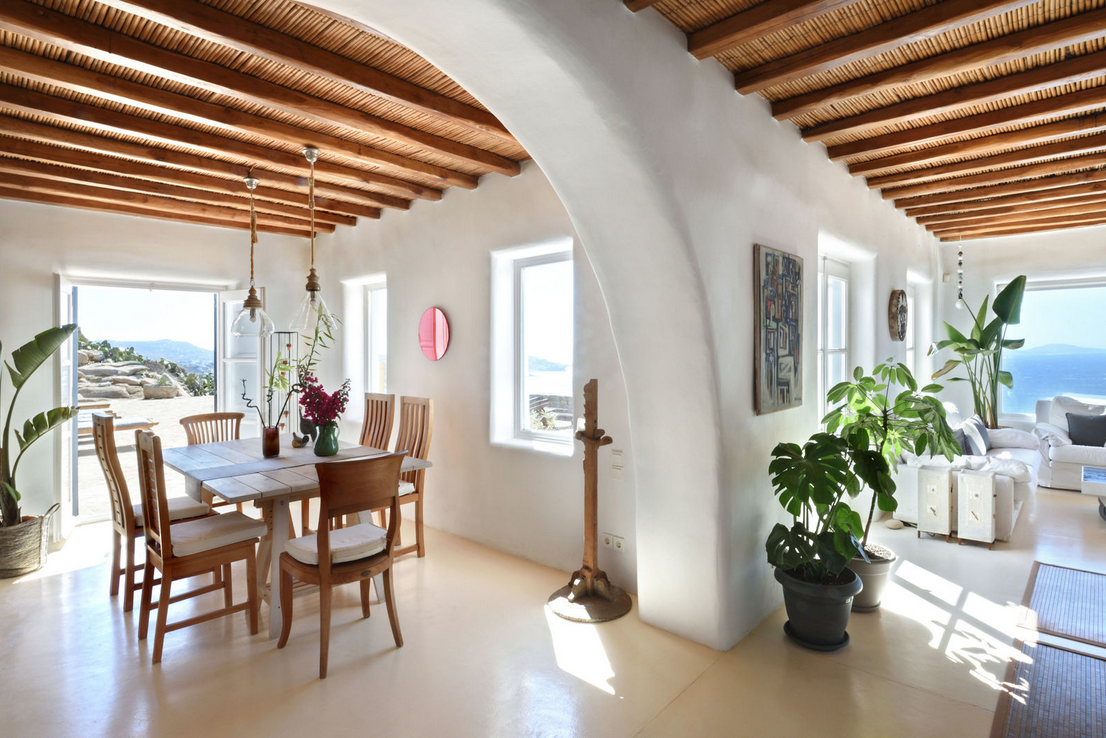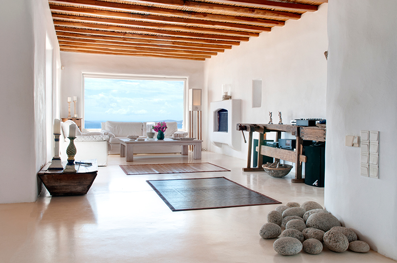 Cette maison a été construite dans le respect de l’environnement rocheux et la culture de l’île. La décoration intérieur est issue des nombreux voyage des propriétaires à travers le monde et les objets d’art donnent à la villa une belle tonalité. Vous profiterez de moment inoubliables sur les terrasses et admirerez les jolis levers et couchers de soleil.