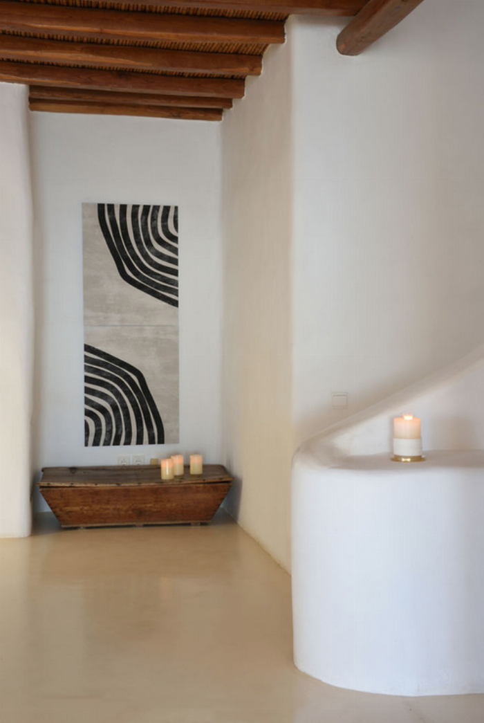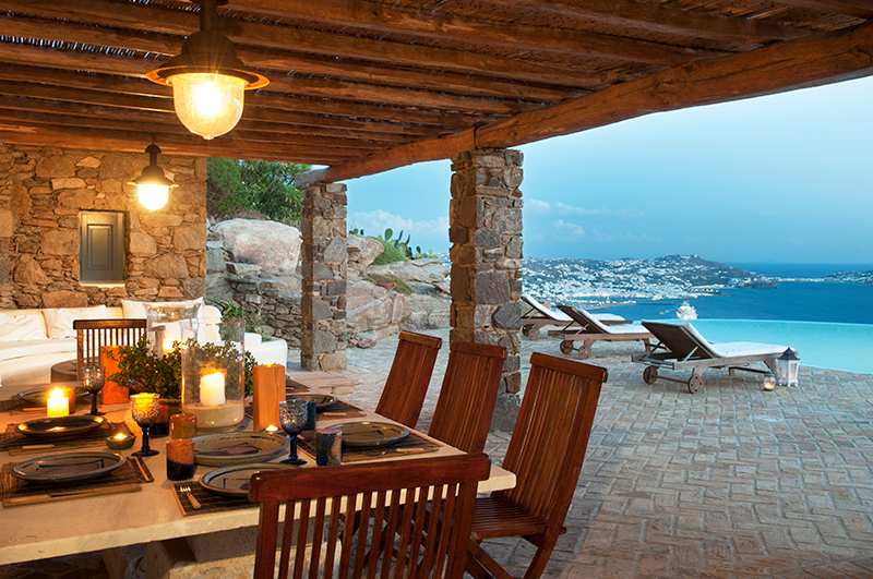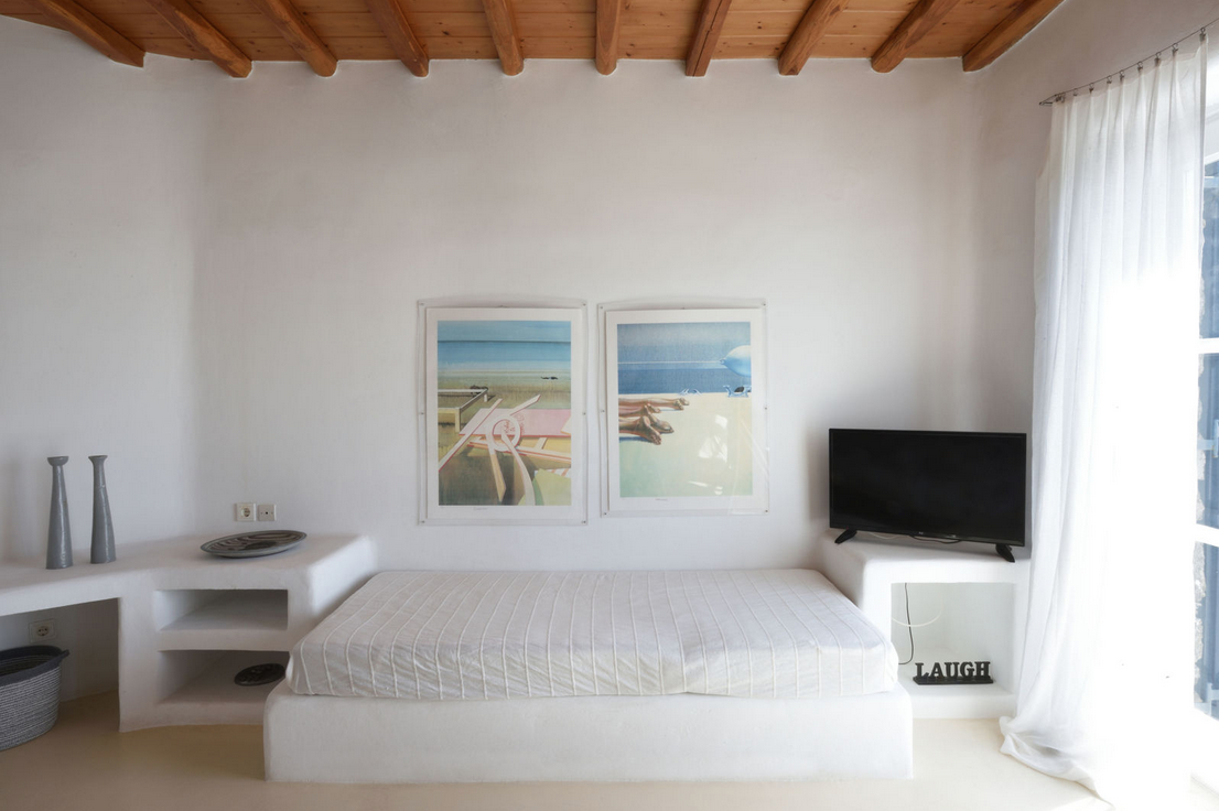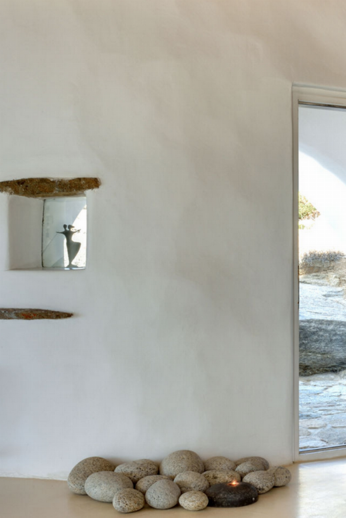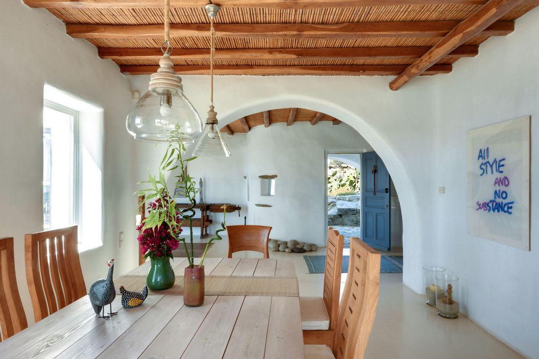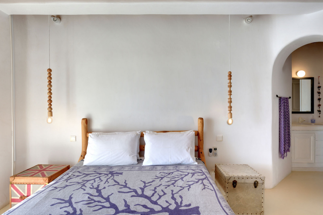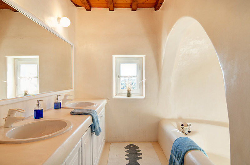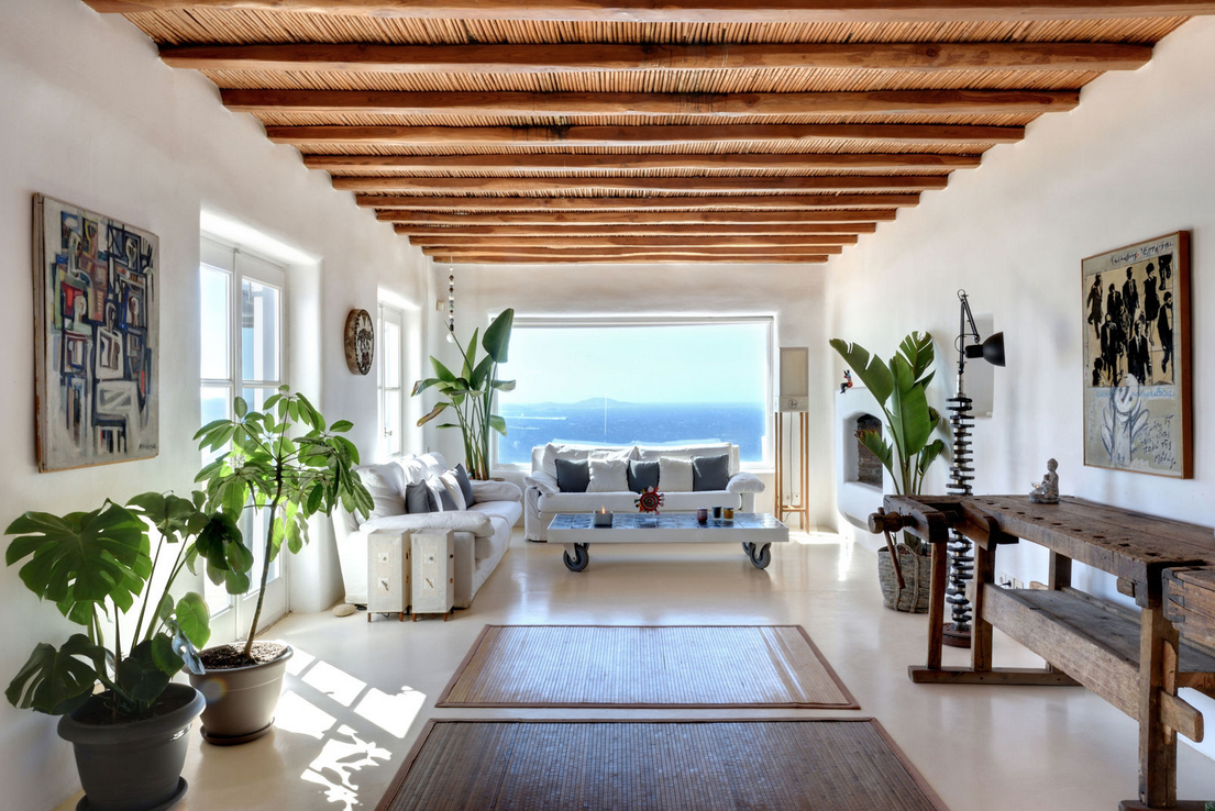 Cette maison a été construite dans le respect de l’environnement rocheux et la culture de l’île. La décoration intérieur est issue des nombreux voyage des propriétaires à travers le monde et les objets d’art donnent à la villa une belle tonalité. Vous profiterez de moment inoubliables sur les terrasses et admirerez les jolis levers et couchers de soleil.