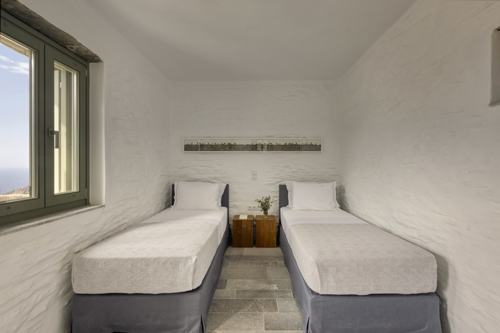 Chambre à lits jumeaux convertible en lit double avec climatisation, vue mer, ventilateur