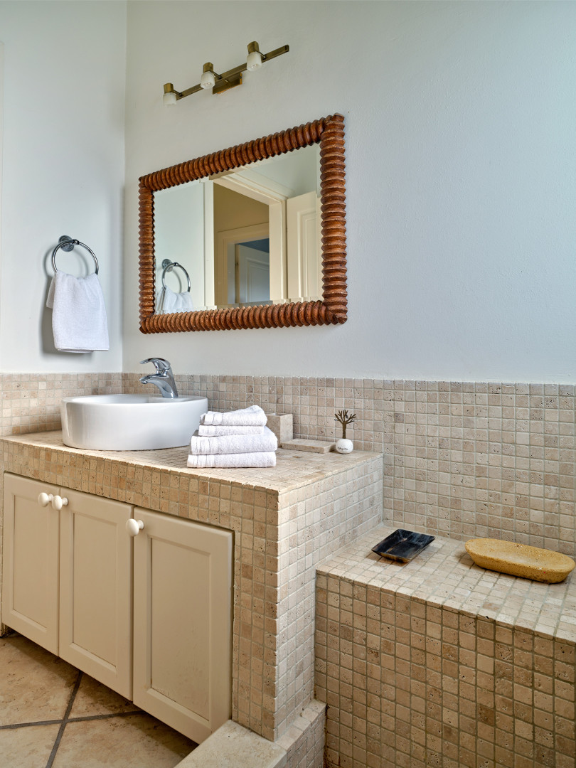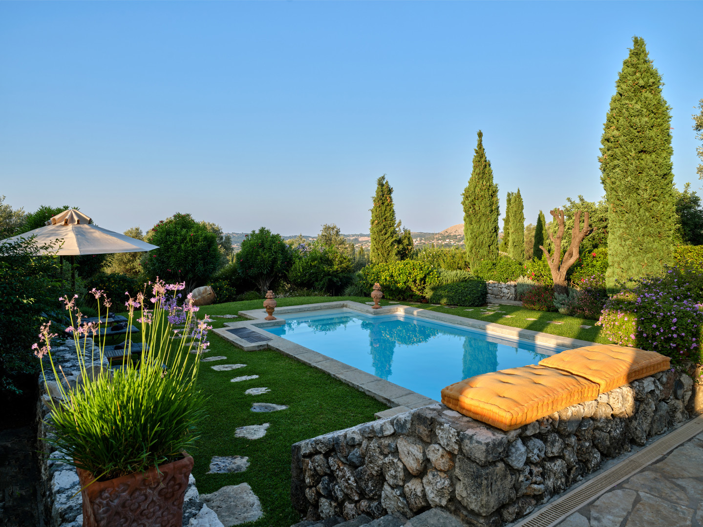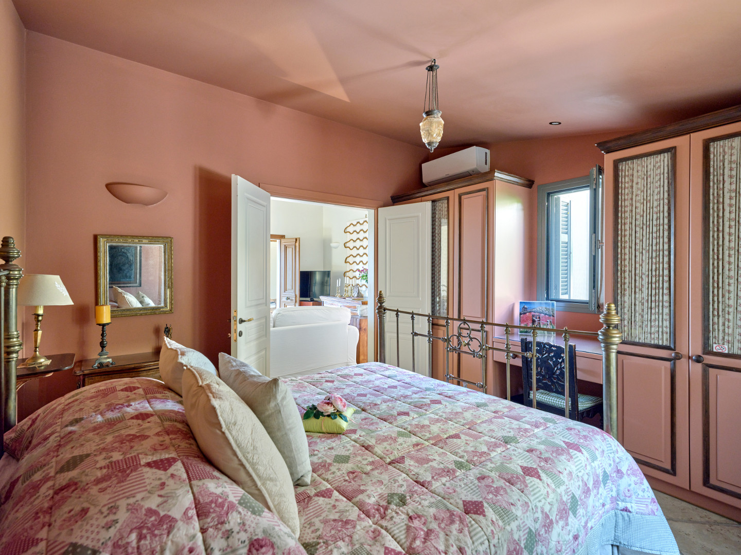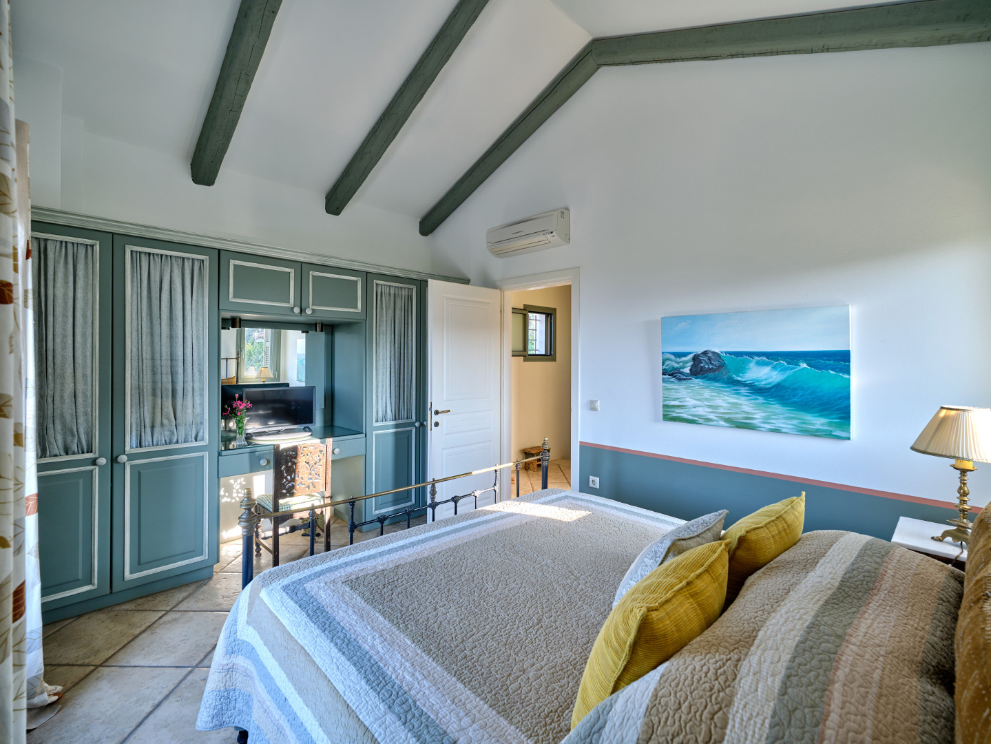 La villa, qui se trouve sur un terrain séparé par un mur et des arbres du reste de la propriété ainsi que du vieux moulin adjacent (habité par les propriétaires), a été nouvellement construite et peut accueillir aussi bien un groupe d'amis qu'une famille. Elle est construite de tuiles anciennes et décorée avec beaucoup de goût, des pièces de collectionneurs et une très belle vue panoramique sur la vallée et la mer Ionienne. Une des particularités de cette villa est sa piscine (11 x5 m), de style Toscan (marches) qui s'étend vers la spacieuse terrasse de la maison. Le superbe jardin offre un cadre naturel charmant. Les chiens ne sont pas acceptés.