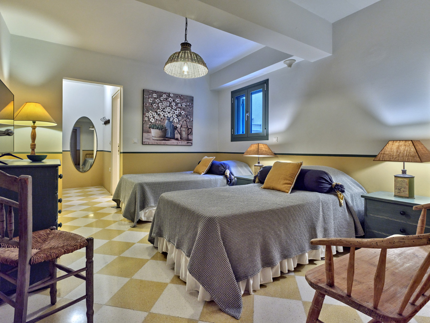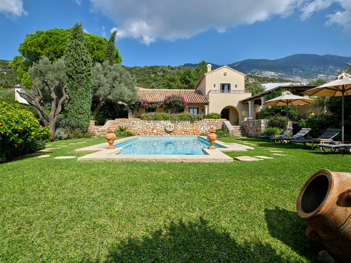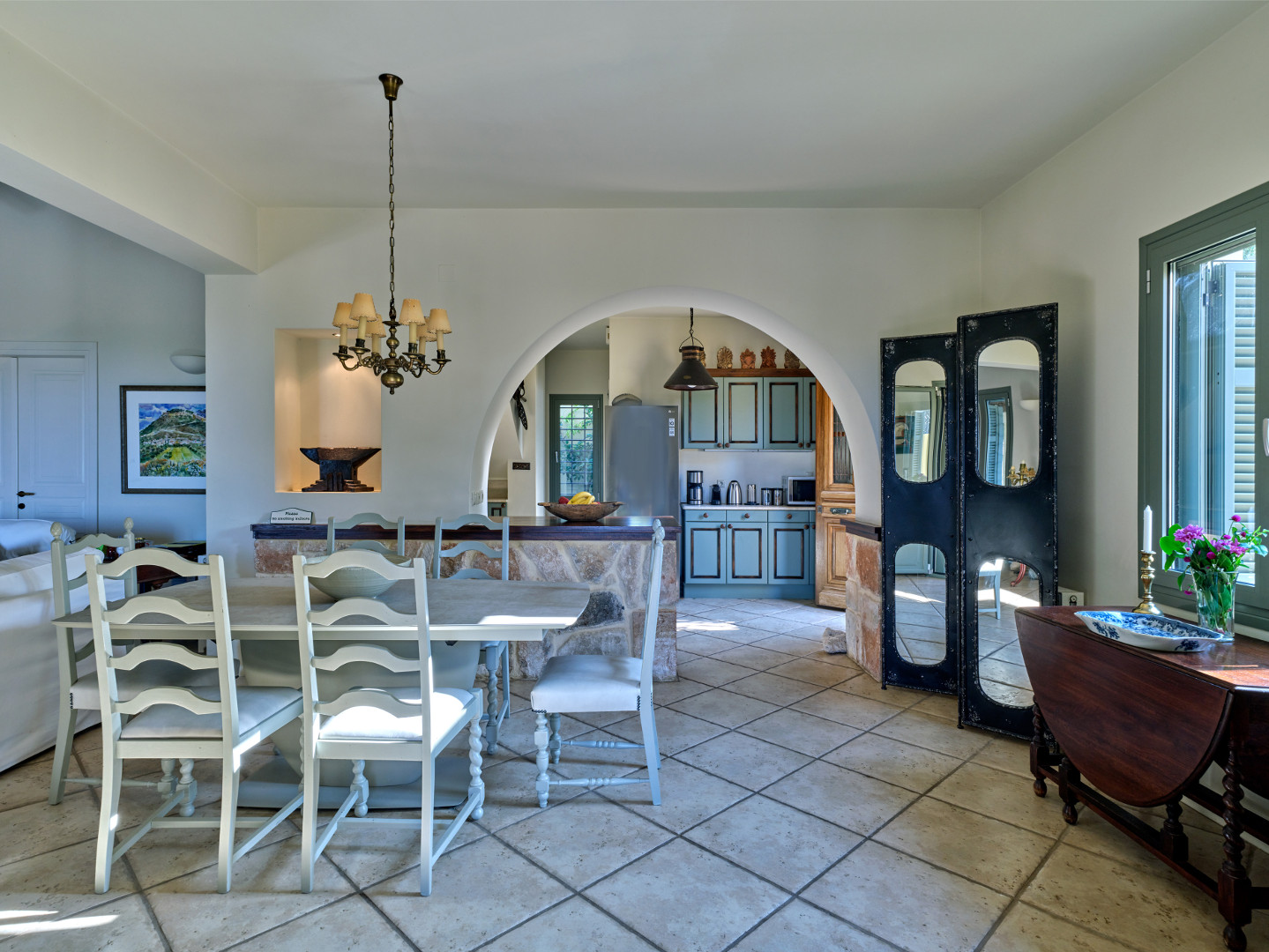Située à 12 kms de Argostoli, la capitale de l'île, et à 900m de la mer, cette villa est un véritable enchantement. Depuis le 17ième siècle, cette grande propriété de famille se compose d'un champ d'oliviers de 25 000m2 et d'un imposant moulin protégé (qui n'est pas louable mais qui peut être visité durant votre séjour).