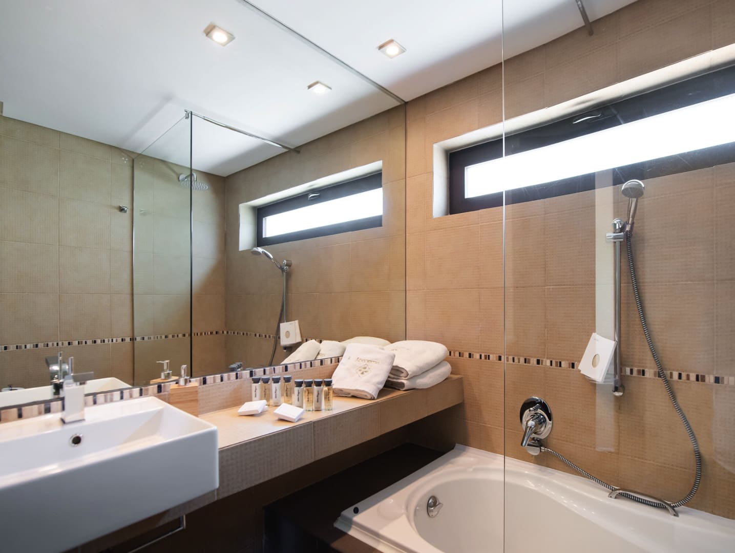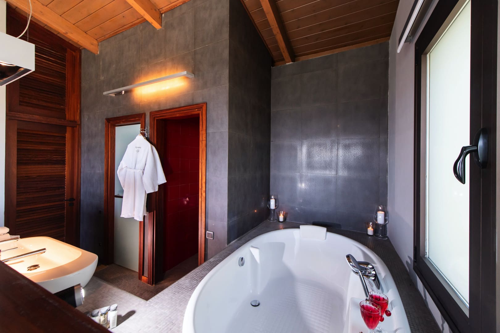 Chambre de Maître de 55m2 avec lit 200, télévision lcd et Salle de bain en suite avec douche, baignoire