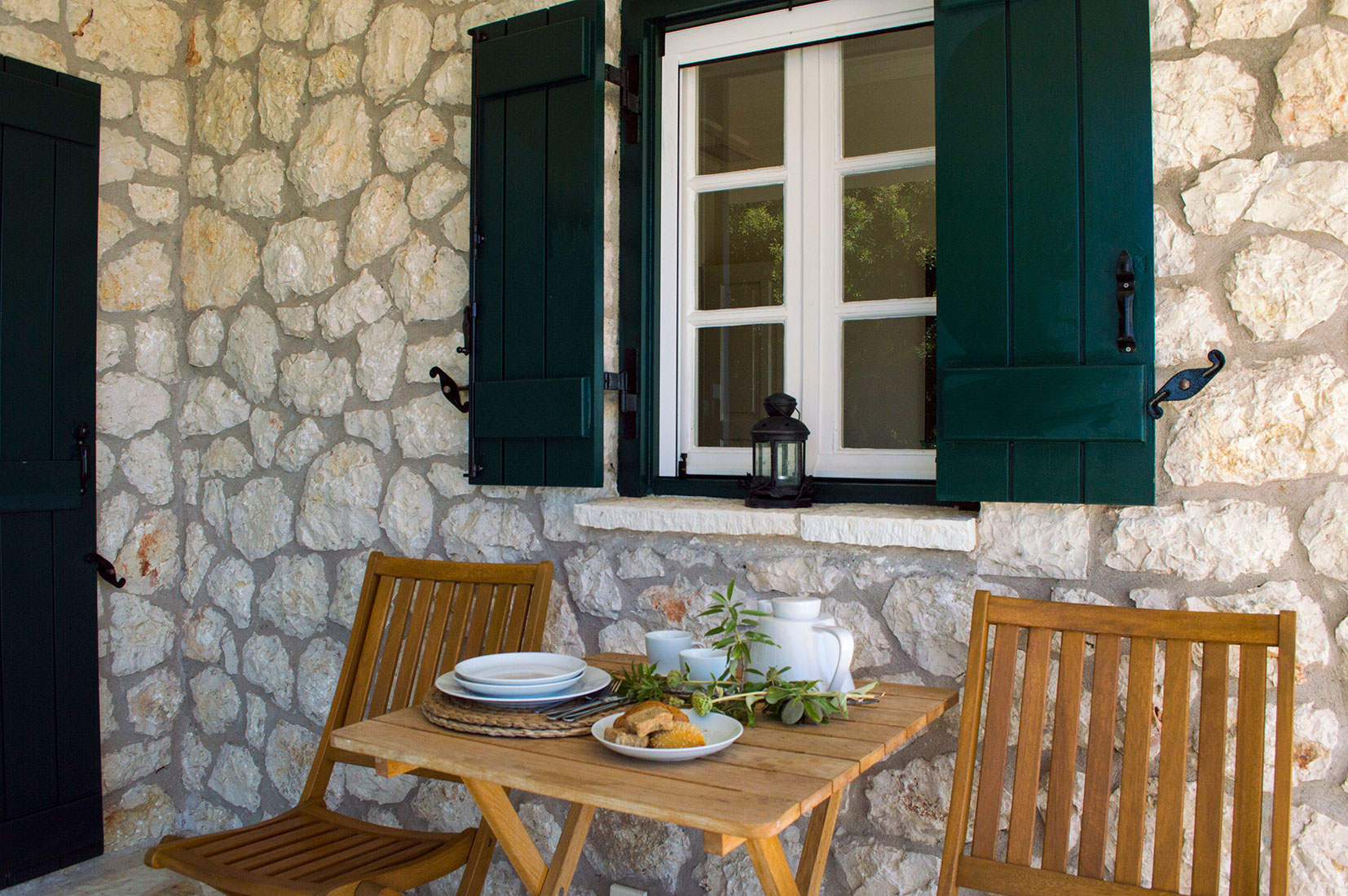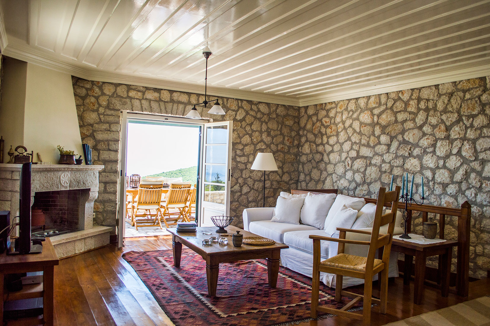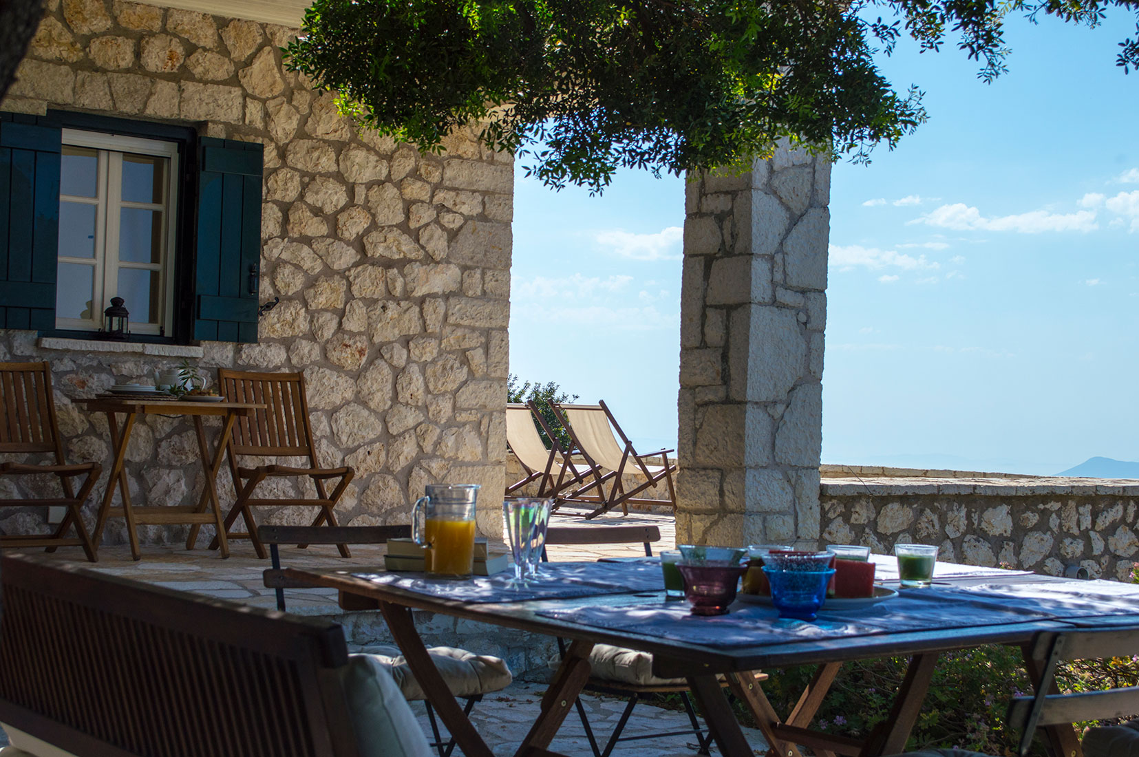 La villa a été construite à partir de matériaux naturels, toit en tuile, poutres apparentes et ossatures extérieures et intérieures en bois, sur 2 niveaux et complètement adapté à l'environnement naturel. Les deux étages communiquent par un escalier intérieur mais ils ont également un accès indépendant via la cours. Toutes les pièces disposent de grandes vérandas et ont une belle vue sur la mer et les îles d'Ithaque et Céphalonie ainsi que de nombreuses petites îles environnantes.