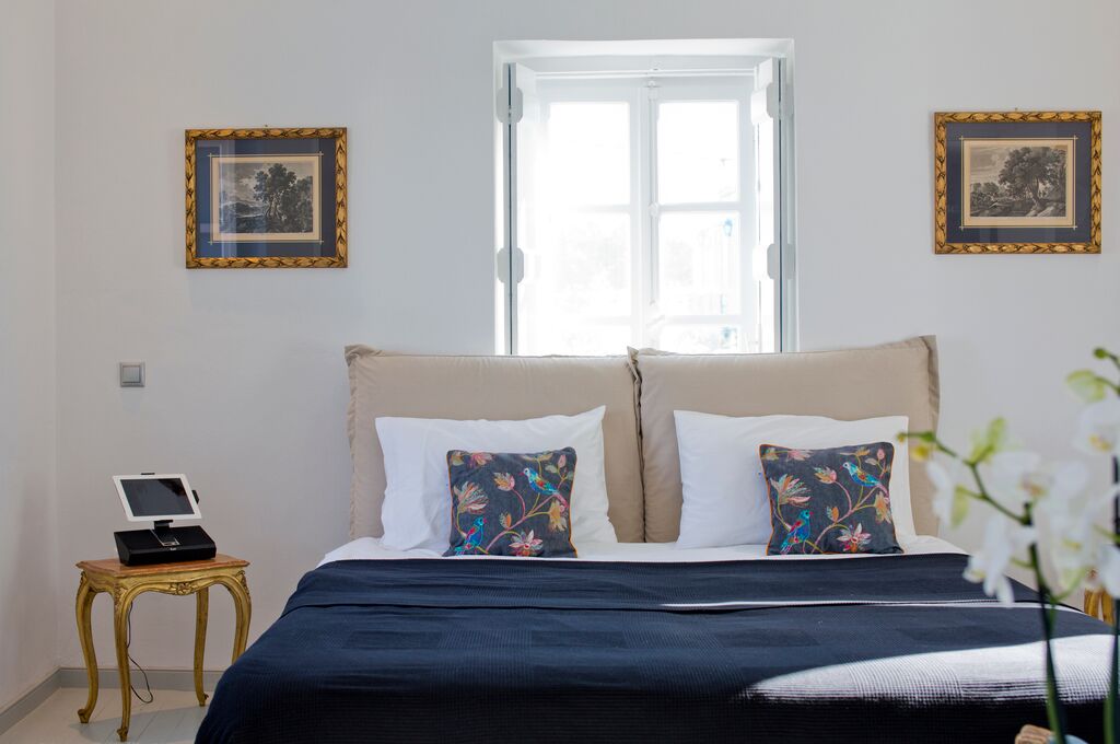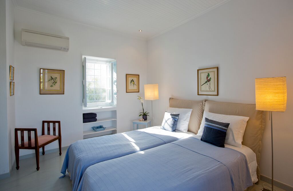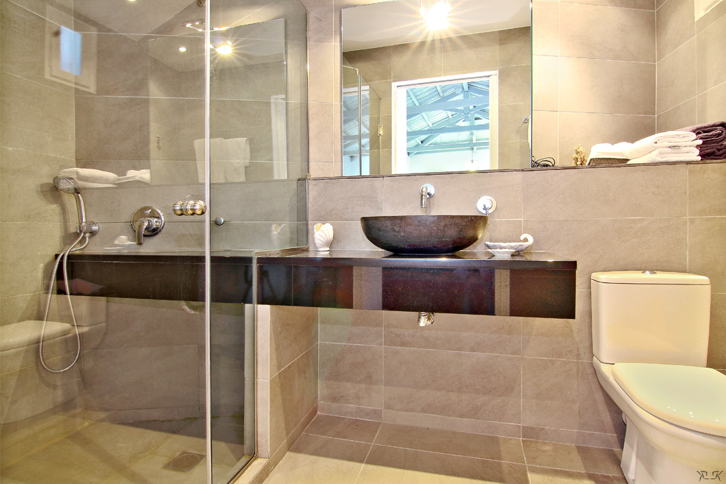 Chambre de Maître avec accès à une véranda où on l’on peut admirer de magnifiques couchers de soleil sur la mer. et Salle de bain en suite