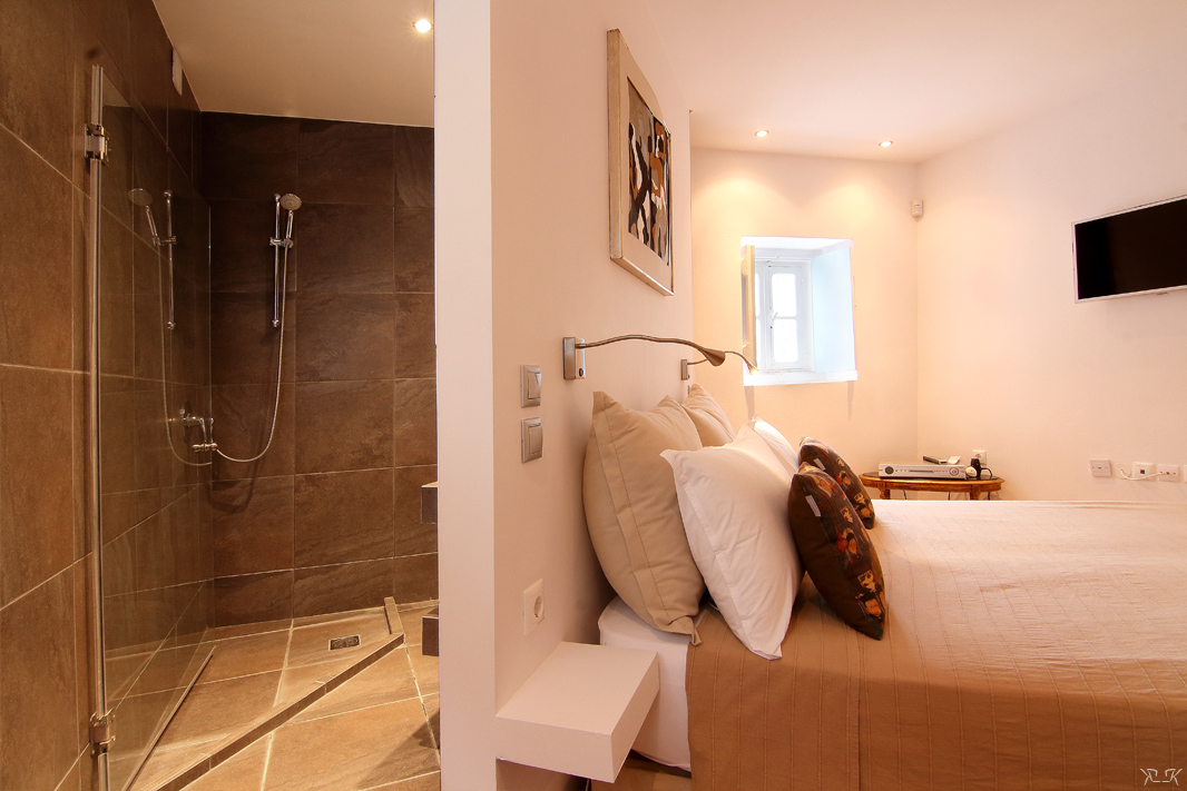 Chambre double ouverte sur le salon et Salle de bain en suite