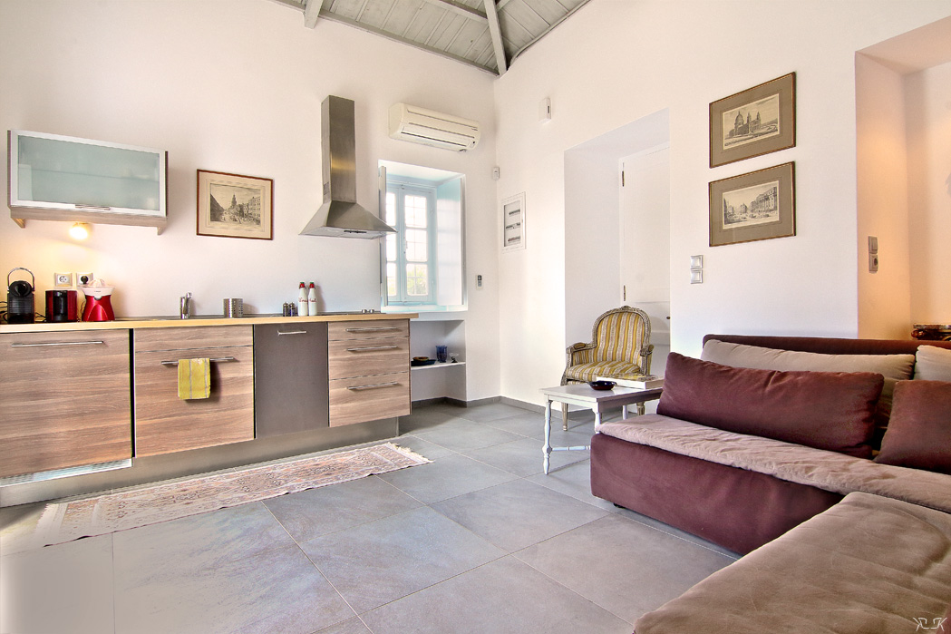 Salon la Kitchenette est équipée d’un mini frigo, plaques électriques, lave-vaisselle