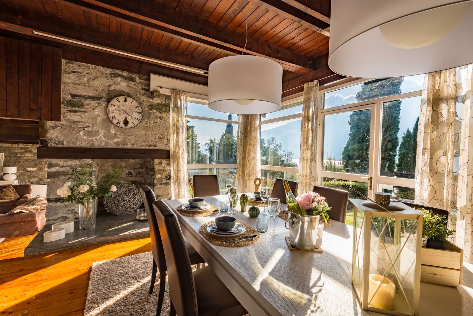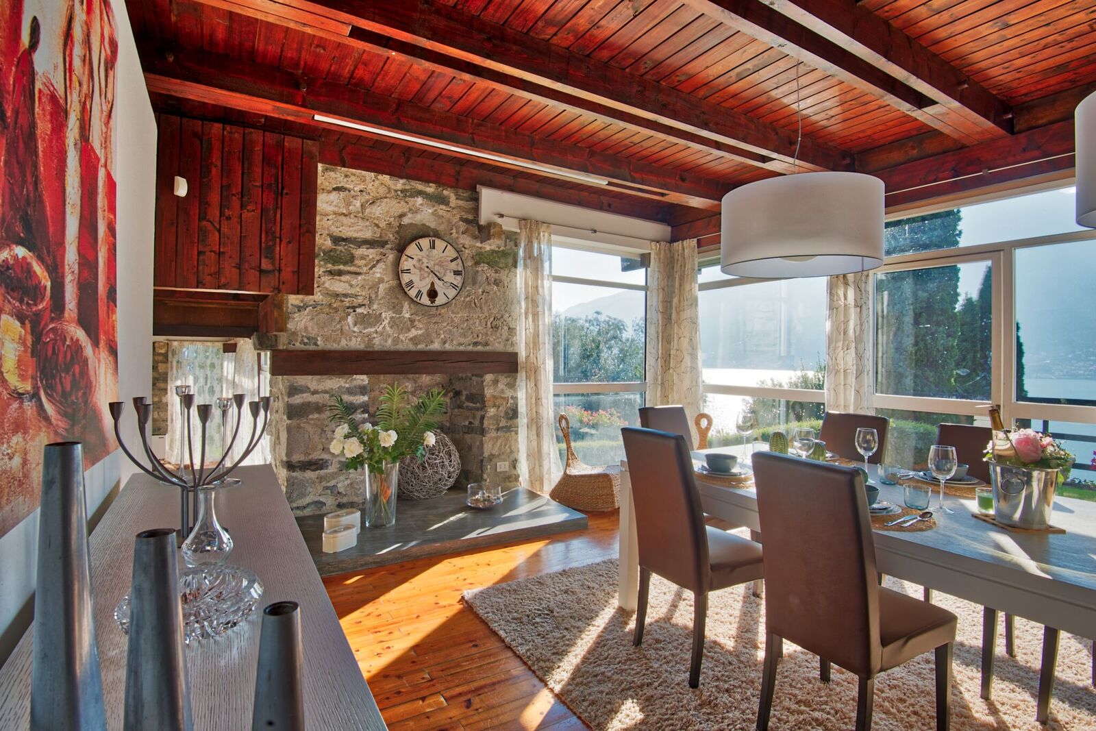 La villa a été dessinée spécialement pour qu’on profite constamment de la superbe vue sur le lac et de la lumière. Vous pourrez vivre à l’intérieur tout ayant la sensation d’être à l’extérieur. Le grand salon et salle à manger s’ouvrent sur la terrasse panoramique idéale pour les repas à l’extérieur et pour profiter du soleil. L’été comme l’hiver vous pourrez profiter de ces espaces en ouvrant les grandes portes fenêtres et ainsi faire rentrer la brise des montagnes et respirer l’air du lac.
