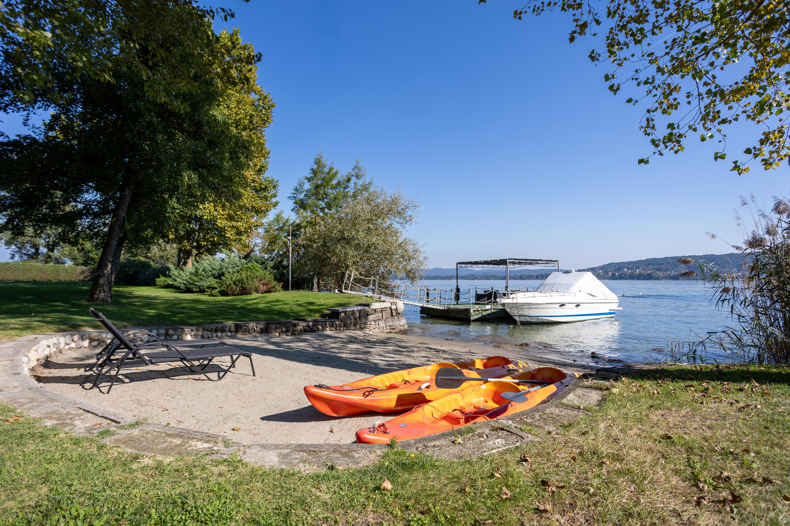 Cette superbe villa dotée de tous les conforts est le lieu idéal pour découvrir le lac Majeur. En effet, le domaine se trouve dans une zone résidentielle privée à seulement 10 minutes à pieds de tous les services et est idéalement située entre Stresa et Arona. Vous pourrez découvrir la région grâce aux nombreuses balades à pied, en vélo ou à cheval et profiter des nombreux sports aquatiques/nautiques que l’on peut y pratiquer. Elle dispose d’un ponton privé ainsi que d’un voilier dériveur et de canoës kayak. Pour ceux qui voudraient rester sur la terre ferme, à disposition, un grand jardin avec piscine (14m*7m), golf privé de 9 trous, tennis (à partager avec le propriétaire) et deux vélos. Le propriétaire propose de nombreux services originaux comme des excursions en hélicoptère, en voilier de 15 mètres, en voilier d’époque en bois de 12 mètres… Laissez vous tenter !