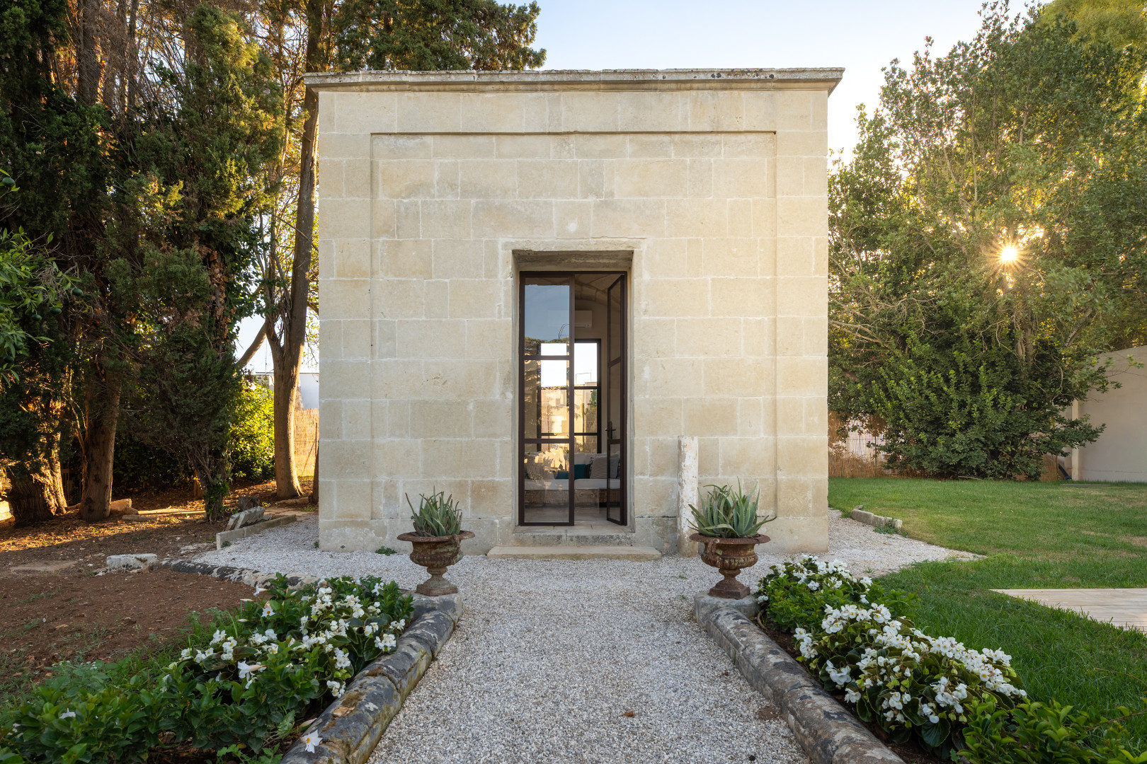 La villa se distingue par son atmosphère historique, son élégance discrète et ses prestations haut de gamme au cœur du Salento. Entièrement rénovée en 2025, elle conjugue le charme authentique d’une résidence d’époque avec le confort moderne : six suites raffinées, huit salles de bain, de vastes espaces de vie ainsi qu’un jardin luxuriant de plus de 4 200 m². Pensée pour accueillir jusqu’à vingt personnes, elle offre un cadre privilégié pour des séjours exclusifs, mêlant tranquillité, nature et art de vivre italien.