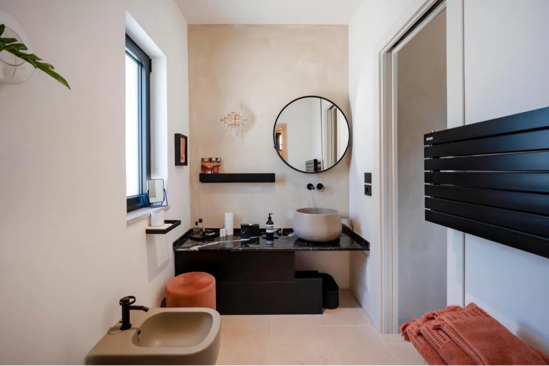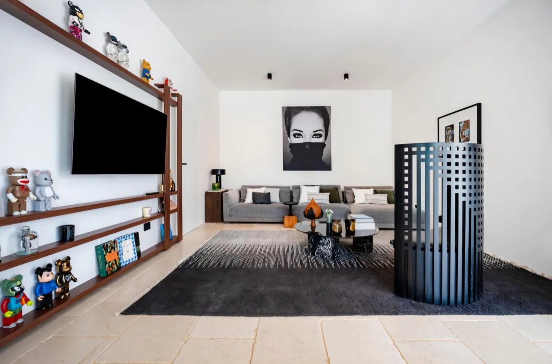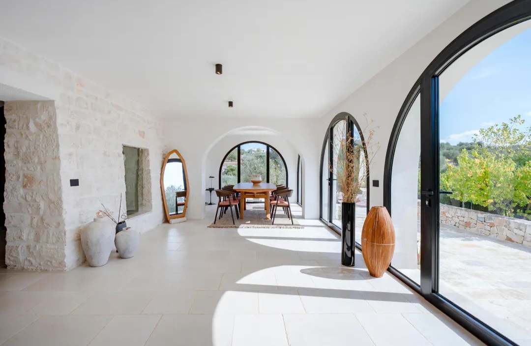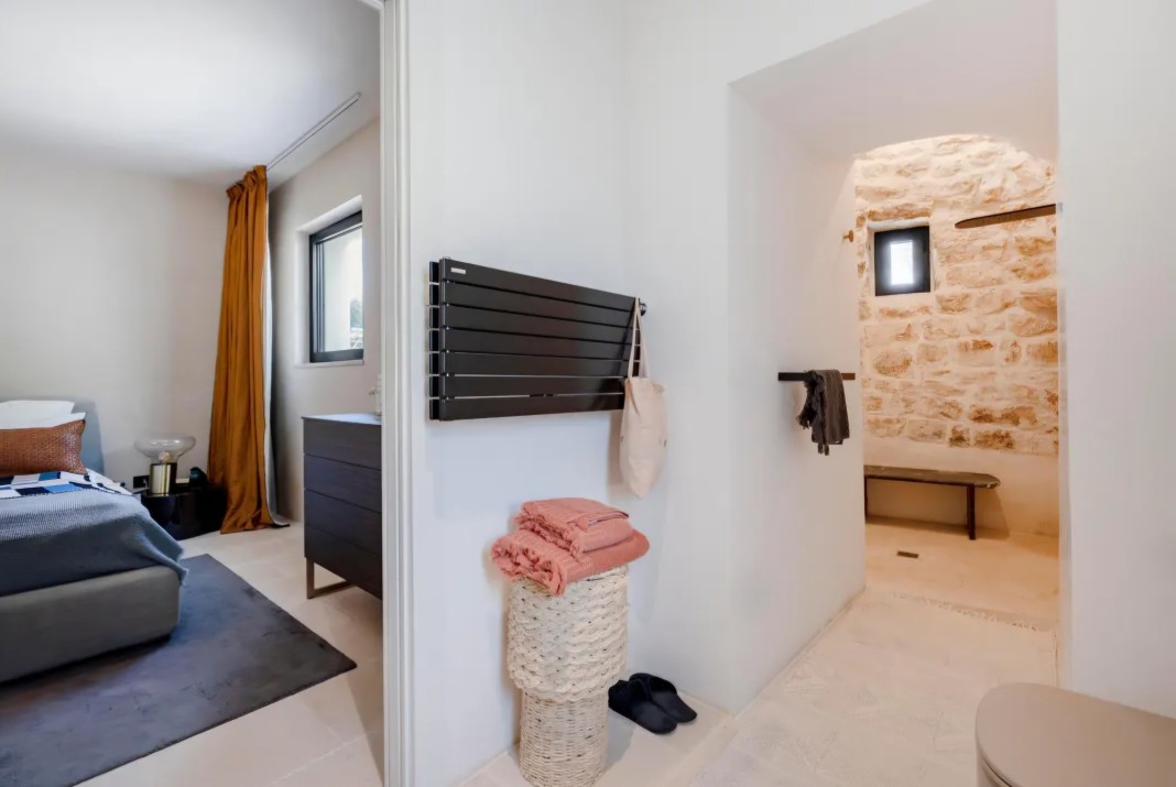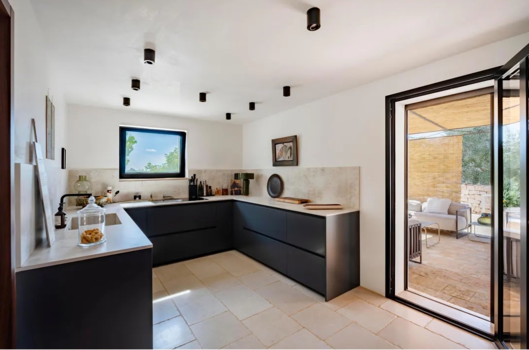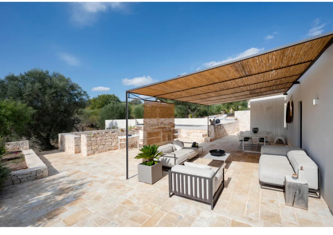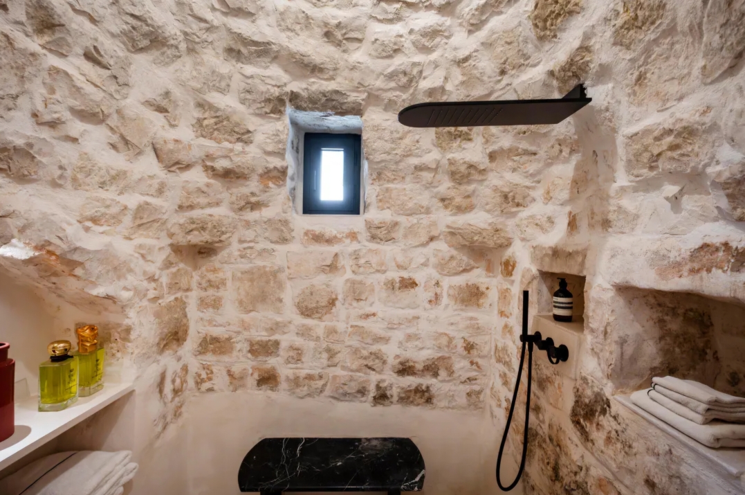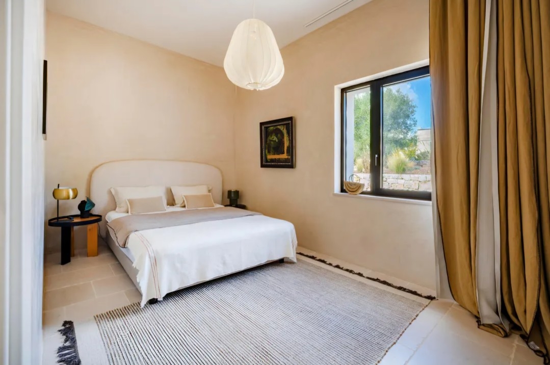 Les espaces extérieurs s’inscrivent dans un esprit résolument rupestre et préservé. Entourée d’environ cinquante oliviers et de plusieurs arbres fruitiers, la propriété offre un cadre naturel apaisant et authentique. Autour de la piscine et de la cuisine extérieure, une zone accueille graminées et plantes grasses, créant un équilibre harmonieux entre nature brute et confort. La cuisine extérieure, avec son coin repas et son salon, invite à profiter pleinement des longues journées et soirées estivales.