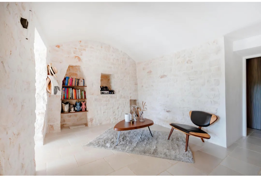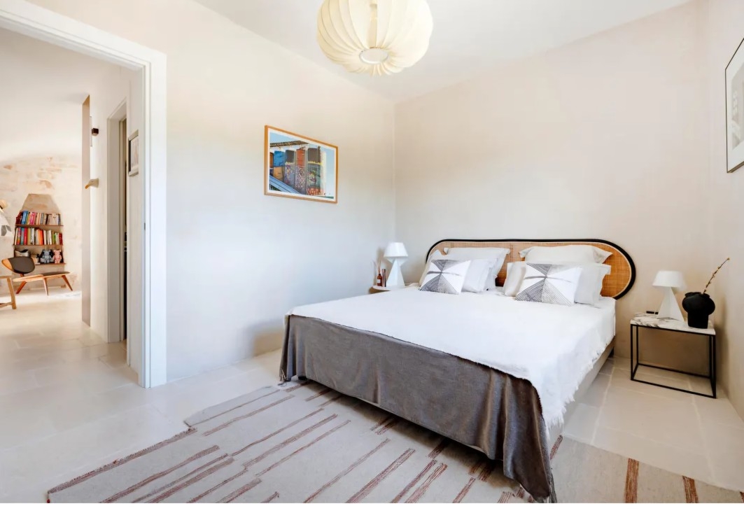 Nichée au cœur de la vallée d’Itria, à quelques minutes du célèbre village de Cisternino, classé parmi les plus beaux d’Italie, cette maison ancienne avec trullo incarne tout le charme authentique des Pouilles. Entièrement restaurée en 2023 par sa propriétaire, architecte d’intérieur, elle allie avec élégance le caractère de la pierre traditionnelle et le confort contemporain. Située en pleine campagne tout en restant proche du village et des principaux sites emblématiques de la région, la maison constitue un refuge idéal pour des voyageurs en quête de détente, de soleil et de découverte culturelle.