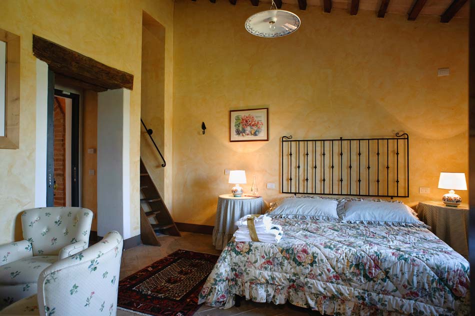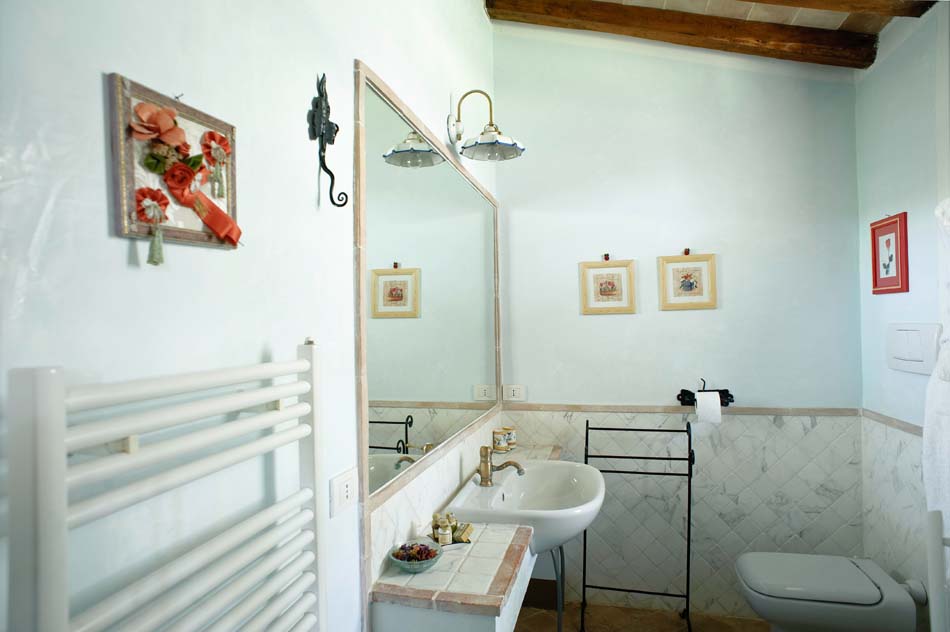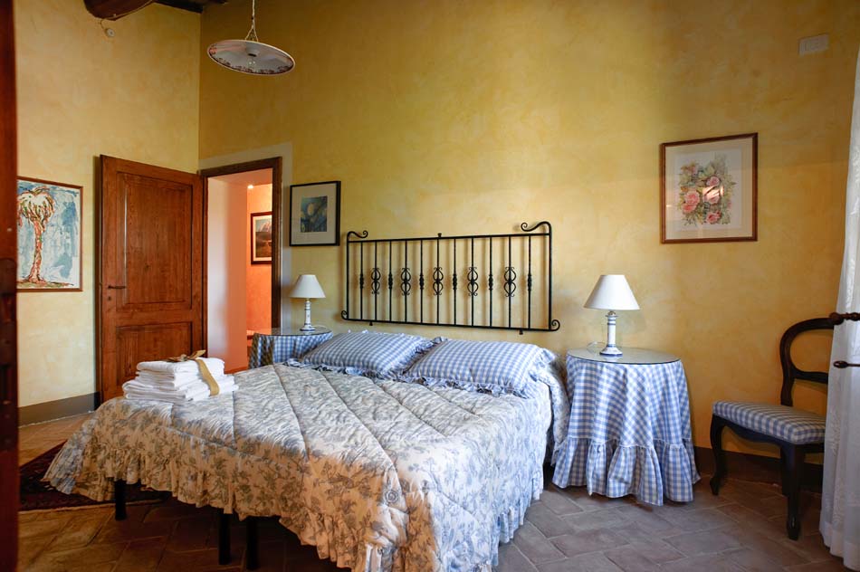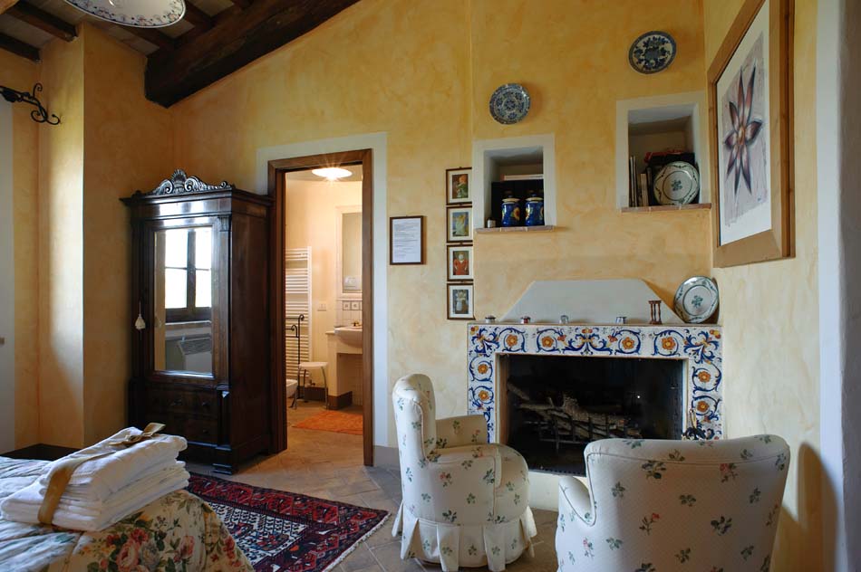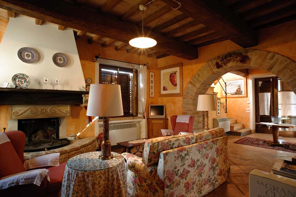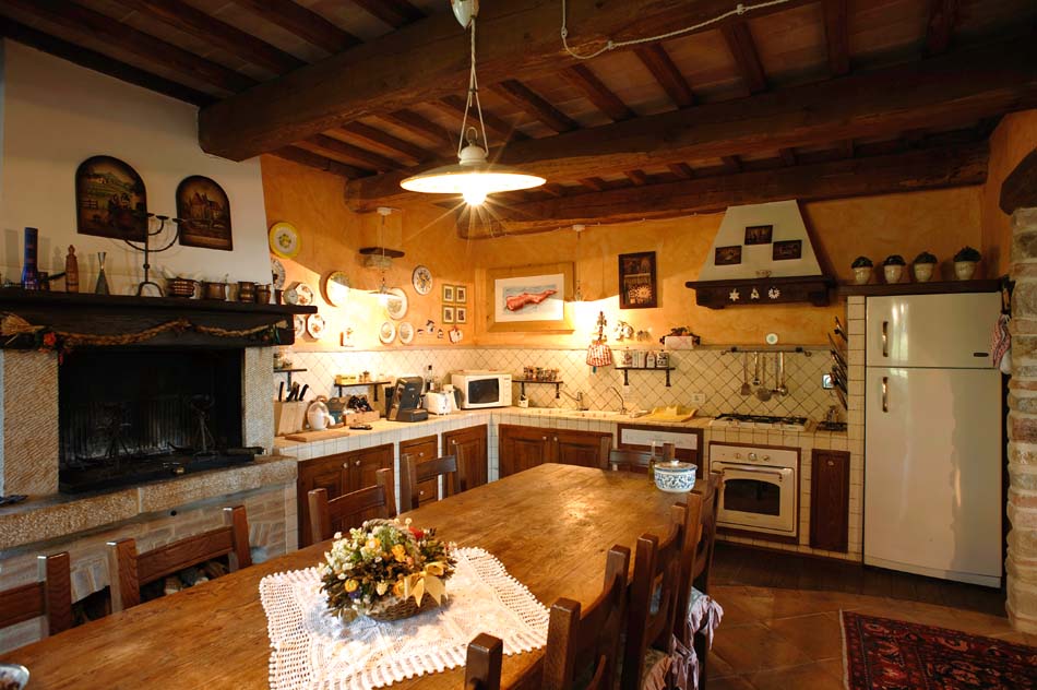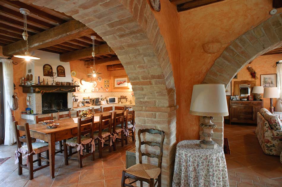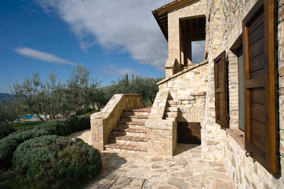 Située dans un domaine privé sur les hauteurs de Todi cette villa avec piscine privée, offre tout le charme traditionnel de l’Ombrie. Murs en vieilles pierres, poutres apparentes, sols en terre cuite, la bâtisse a même sa petite tour typique des maisons d’autre fois. Les espaces sont décorés avec soin et une ambiance chaleureuse de maison de famille s’en dégage.