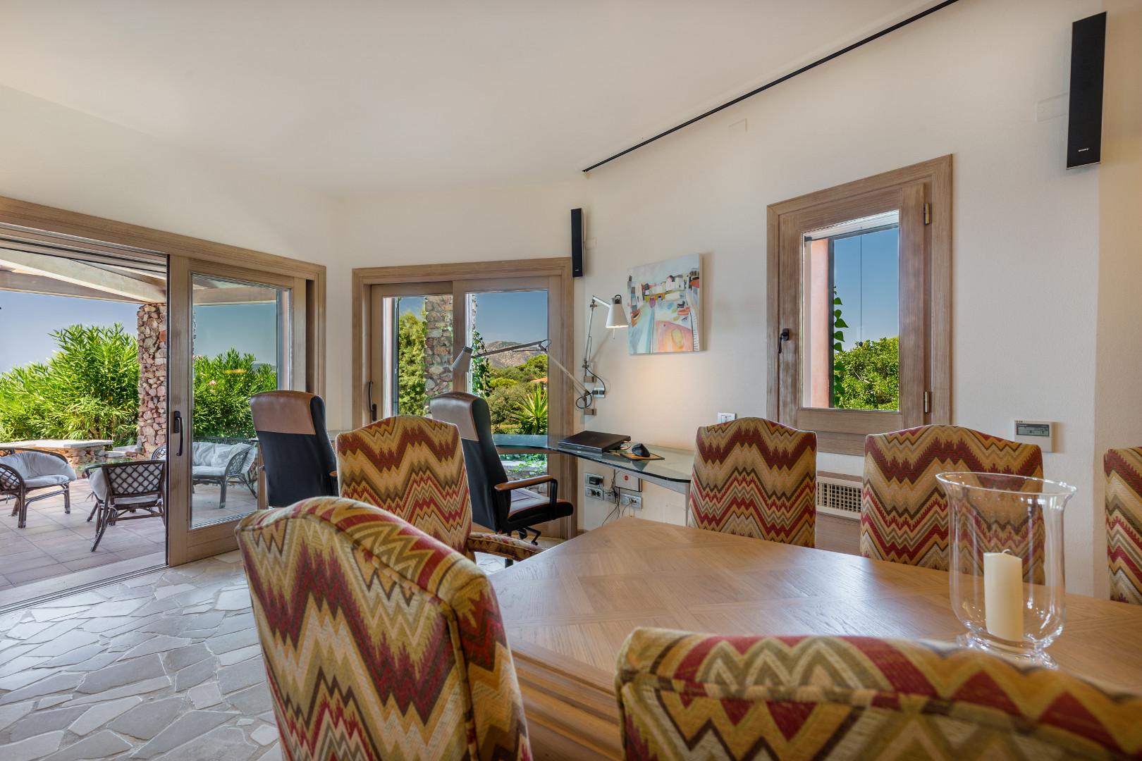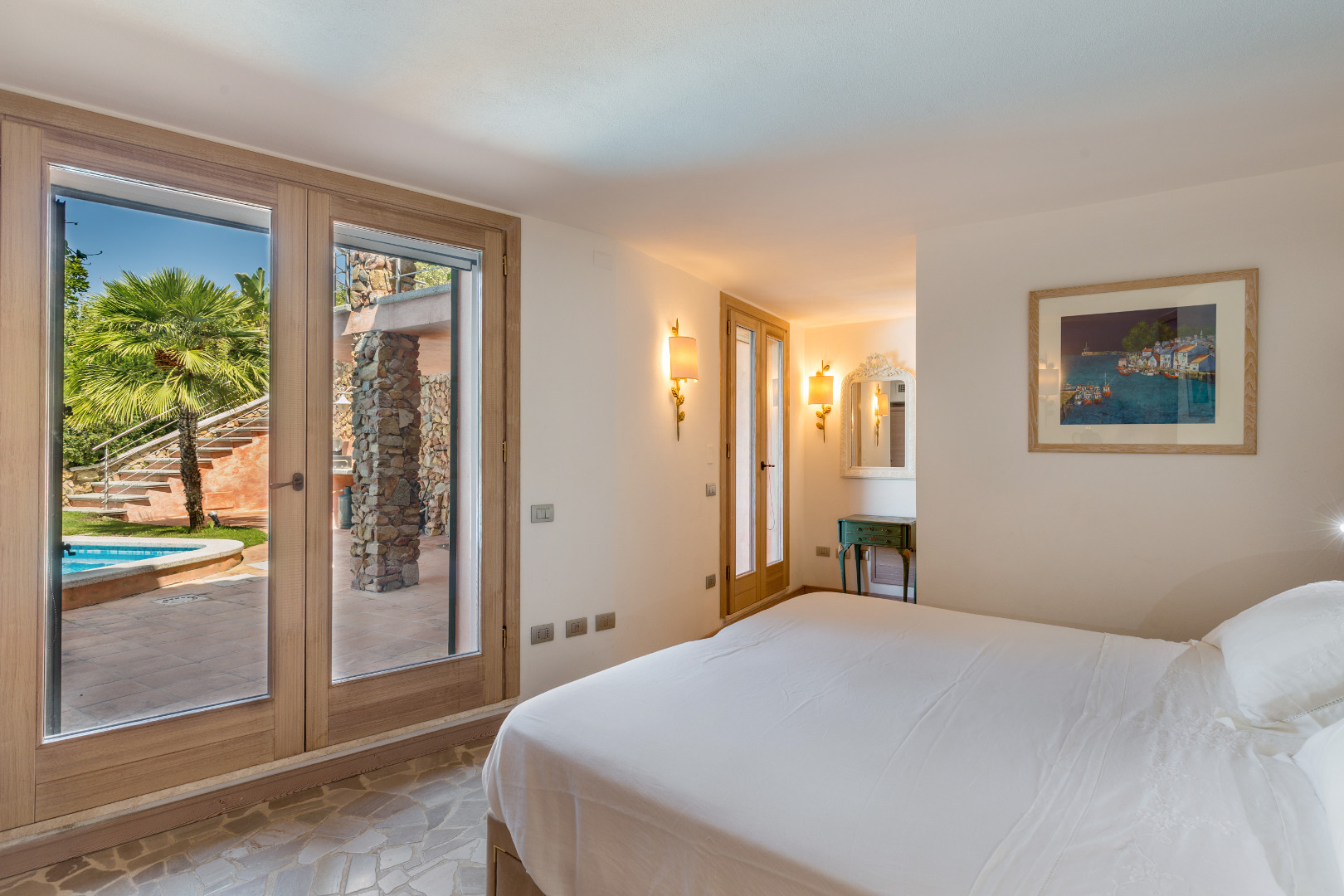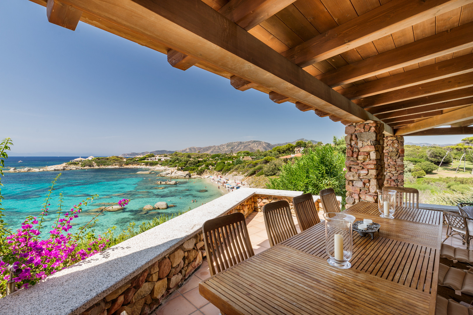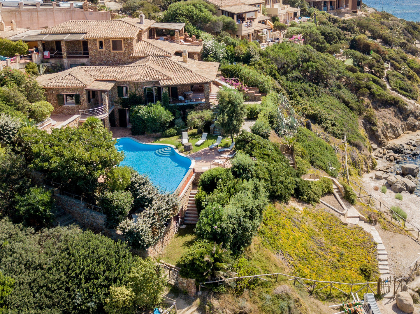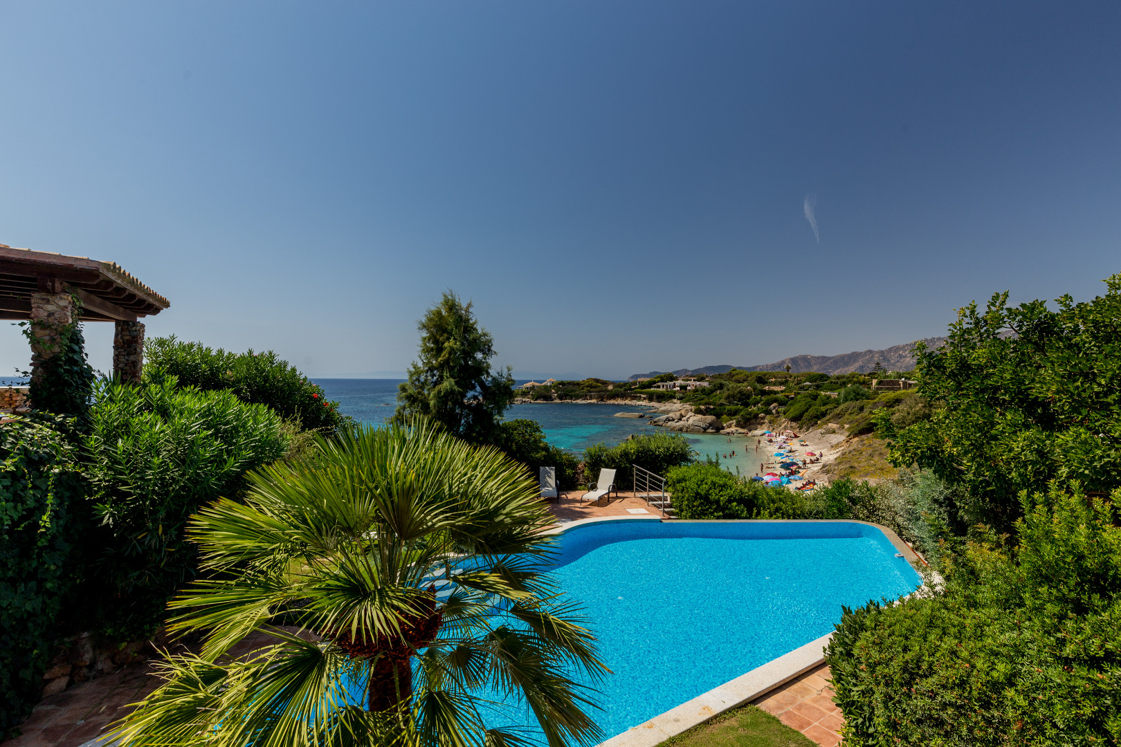 Villa exceptionnelle donnant directement sur la plage d'une baie située sur pointe Sud Est de la Sardaigne, à proximité de la ville petite mais très connue de Villasimius. Littéralement cernée par les eaux turquoises d'une réserve marine naturelle, la villa, grâce à son orientation sud-ouest, offre non seulement les plus beaux couchers de soleil d'Italie, mais conserve jusqu'au mois de novembre un ensoleillement majeure ainsi que toute sa chaleur. L'adorable petit jardin qui descend en pente douce vers la plage, est agrémenté d'une grande piscine, de terrasses, d'un coin BBQ. Là où finit le jardin, commence la plage de sable blond qui borde des eaux cristallines. Sur le promontoire une voie relativement étroite dessert les villas entre elles et descend vers la plage. Sur le port, proche de la villa, vous pourrez louer un bateau et du matériel de plongée. Vous trouverez aussi tous les équipements nécessaires aux sports nautiques, un golf, un centre équestre etc.…. et des restaurants. Villasimius est une ville touristique de la côte sud-est de la Sardaigne où se trouvent quelques-unes des plus belles plages de la Méditerranée ! Cette région est considérée comme étant la plus authentique et la plus précieuse de Sardaigne, ceci grâce à sa situation exceptionnelle et ses atouts incomparables, tels que de longues plages de sable blanc, des calanques sauvages, des criques enchanteresses, des falaises, des golfes, et des îles encore inviolées. La qualité de l'environnement présente ici un attrait majeur motivant le choix d'y passer des vacances car il s'agit de séjourner dans un site très protégé et encore sauvage…