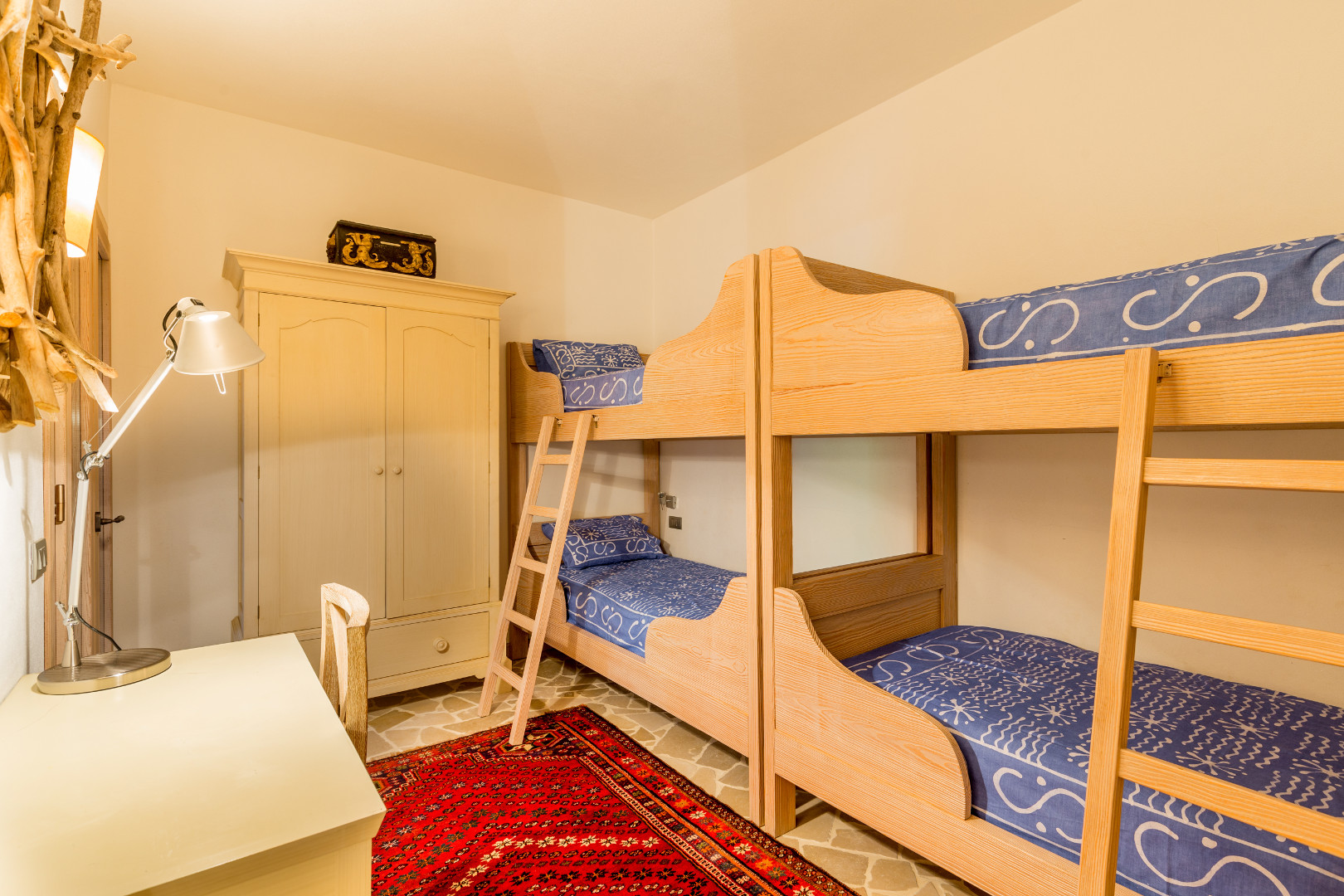 Chambre à lits superposés avec lit 90, accès terrasse et Salle de bain en suite avec baignoire, lavabo double