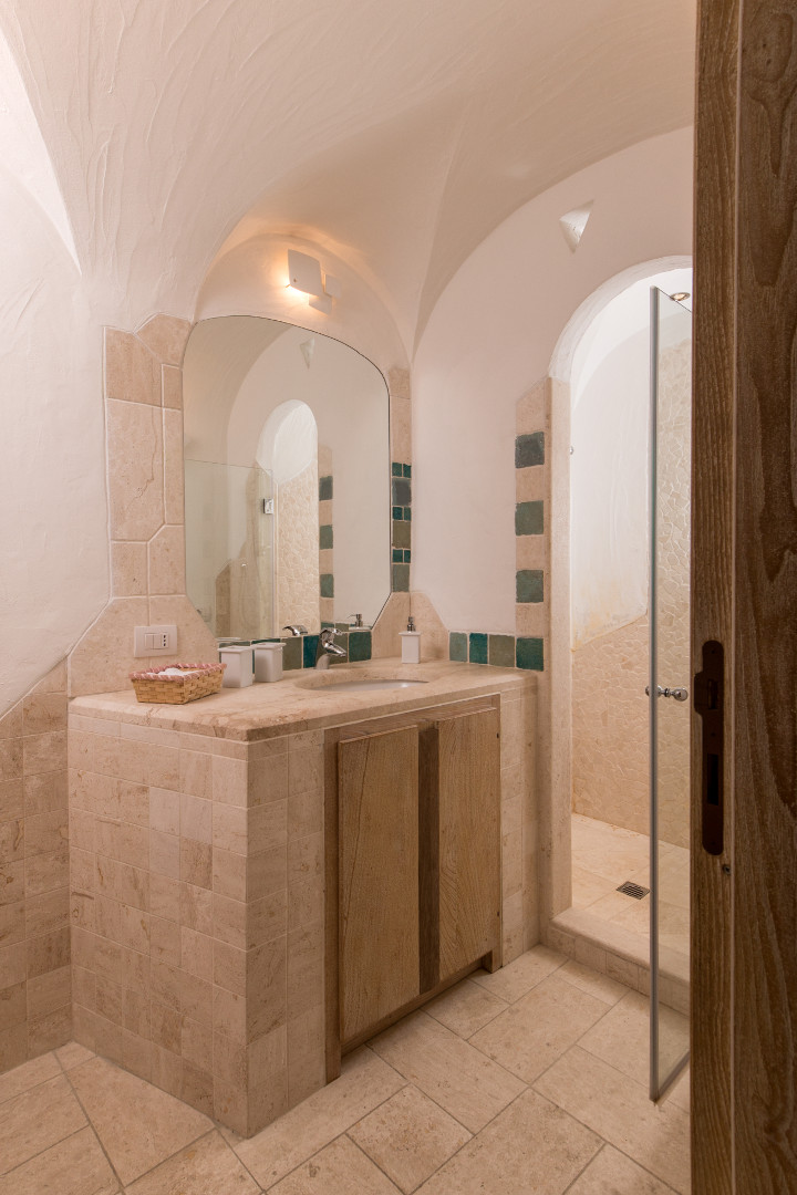 Chambre à lits jumeaux accès par une marche et Salle de bain en suite avec douche