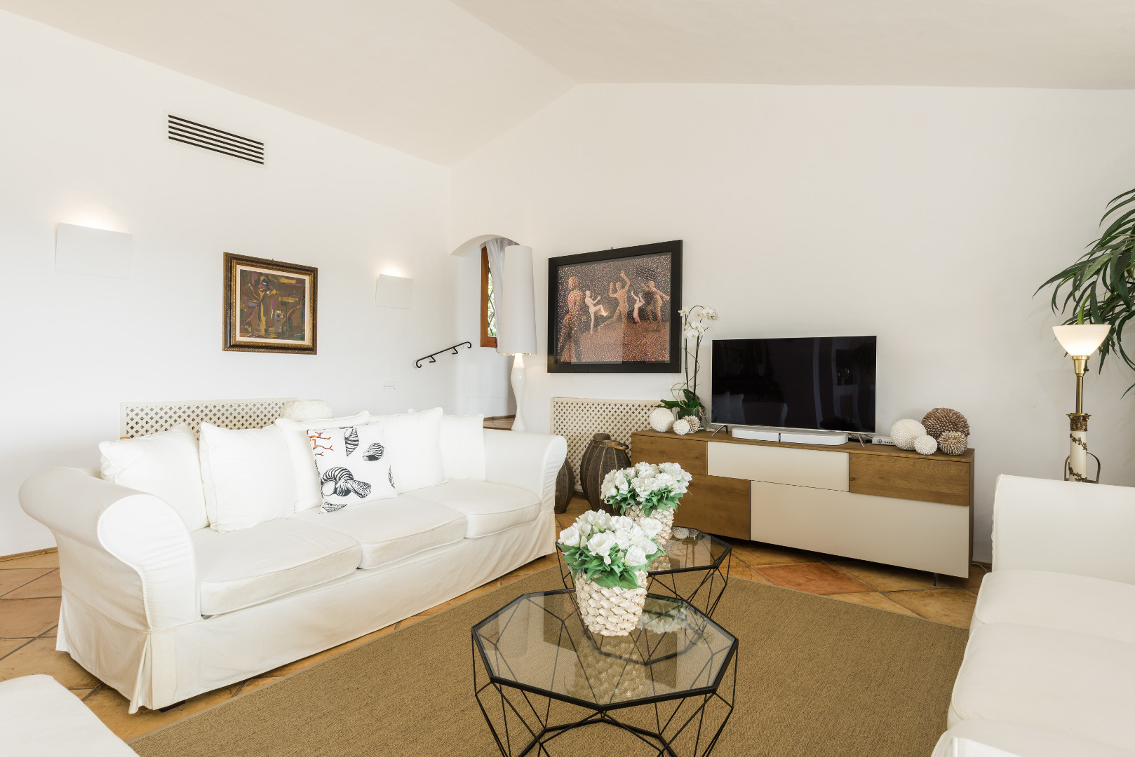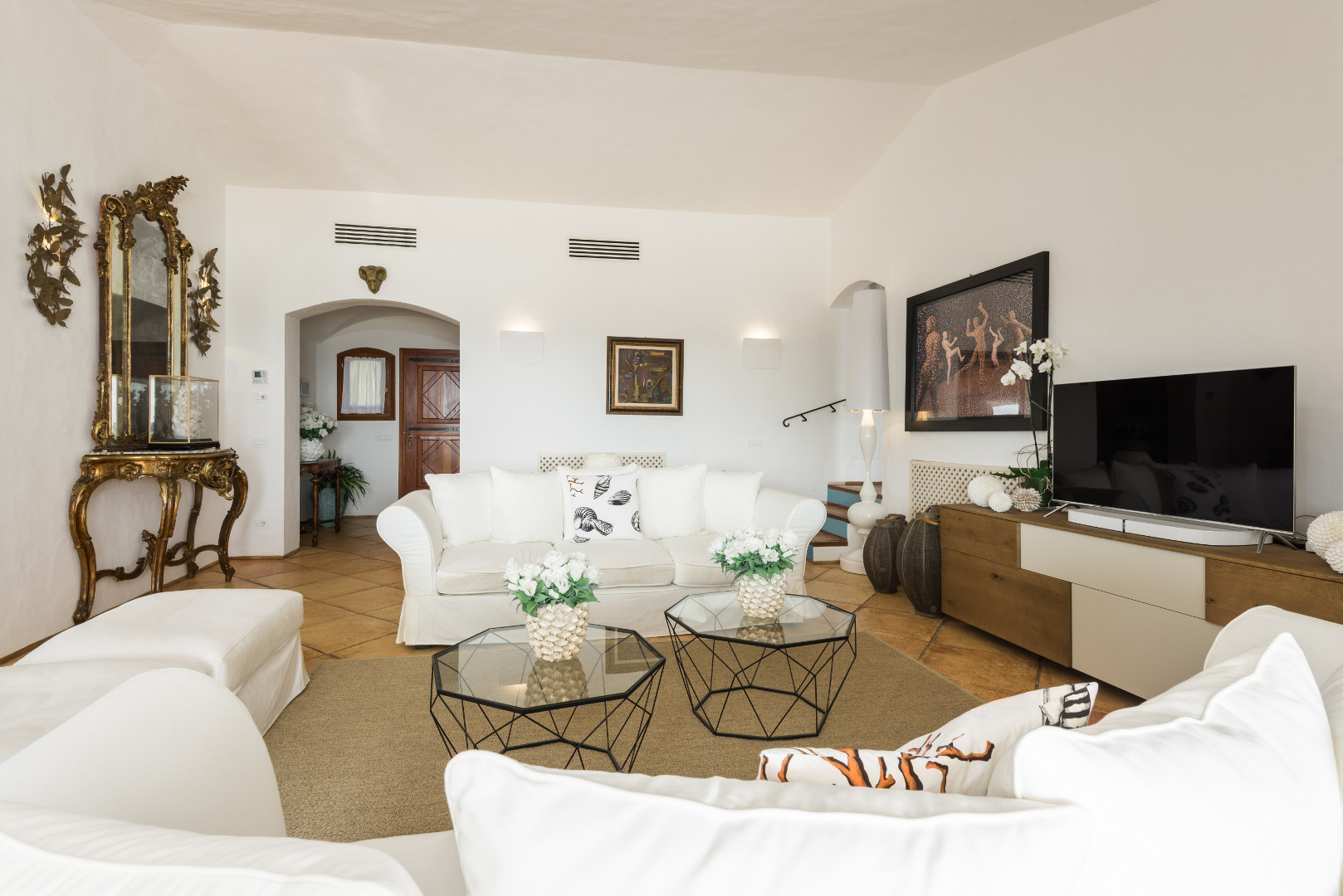 Perchée sur les hauteurs de Pantogia, cette villa charmante jouit d'une vue captivante sur le golfe du Pevero.