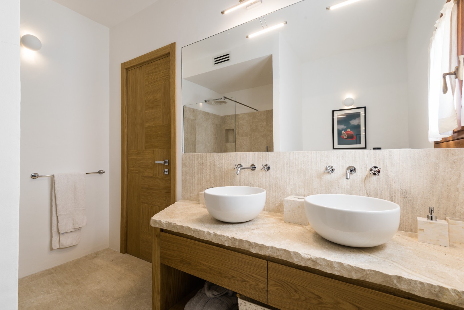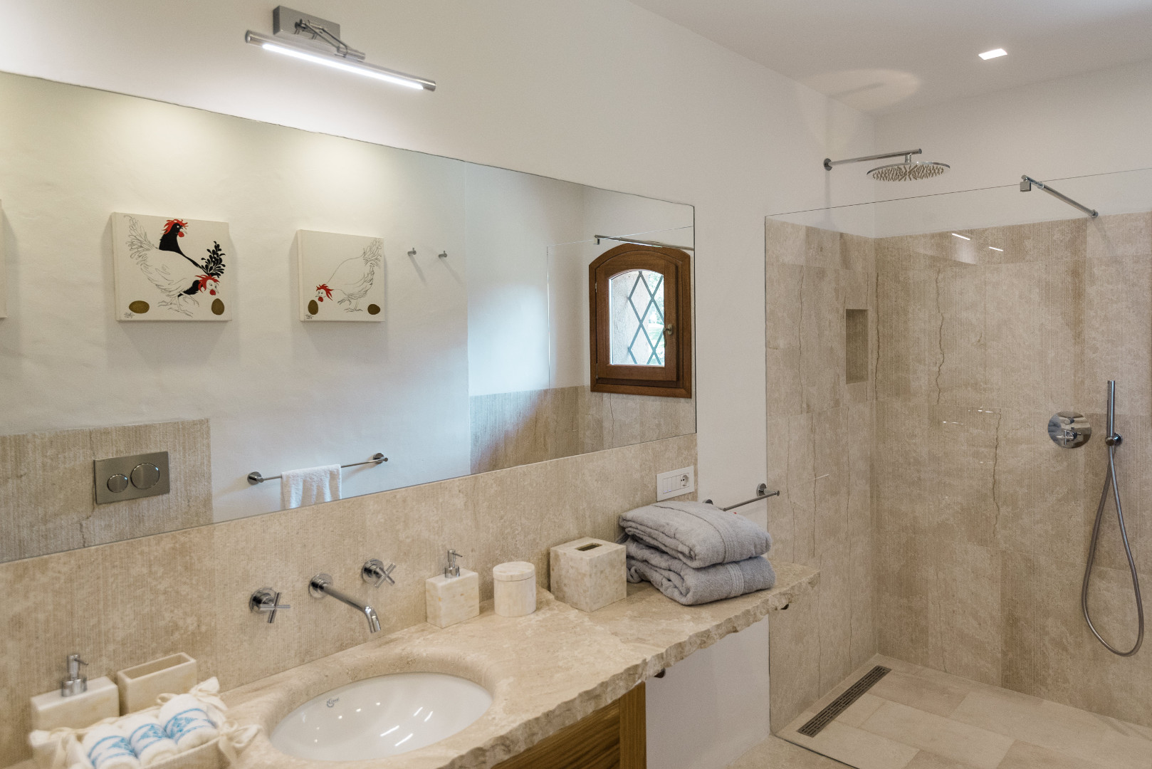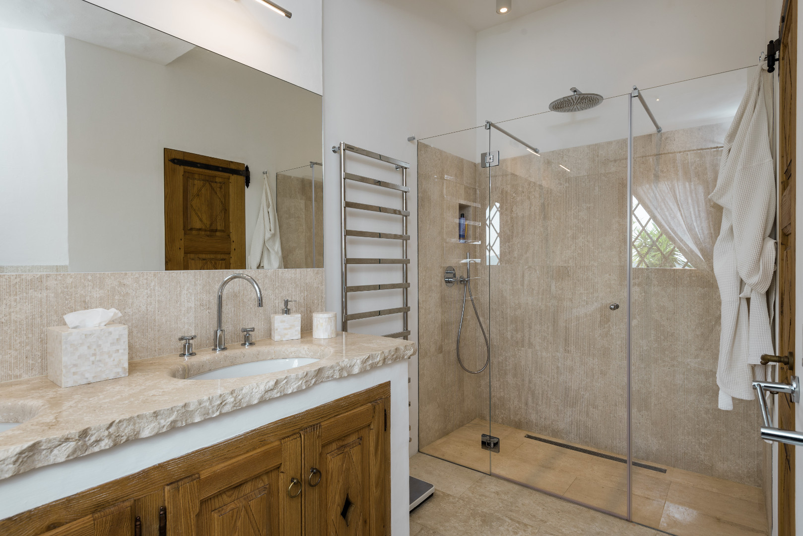 Chambre double et Salle de bain en suite avec douche, lavabo double