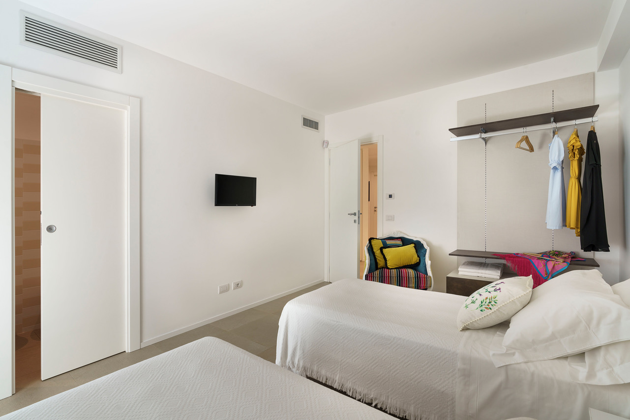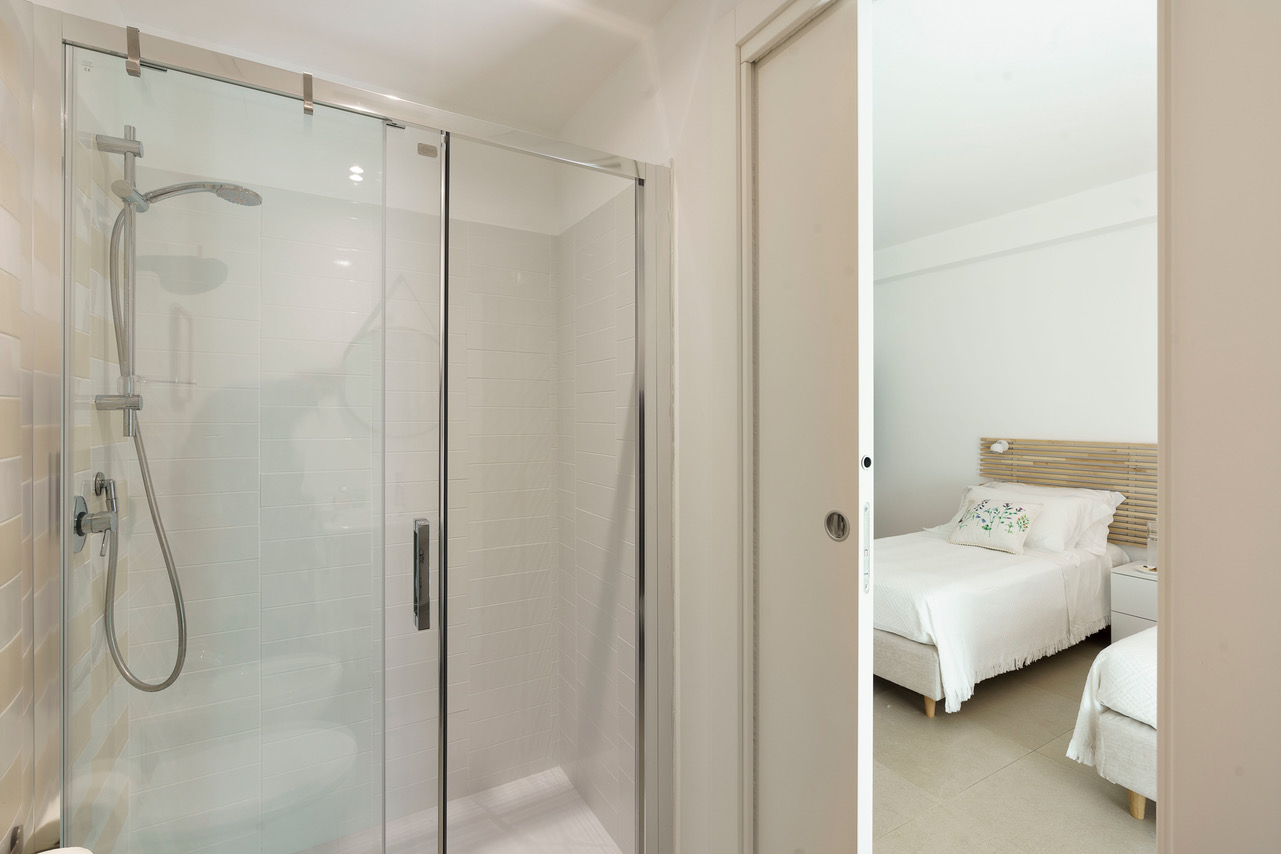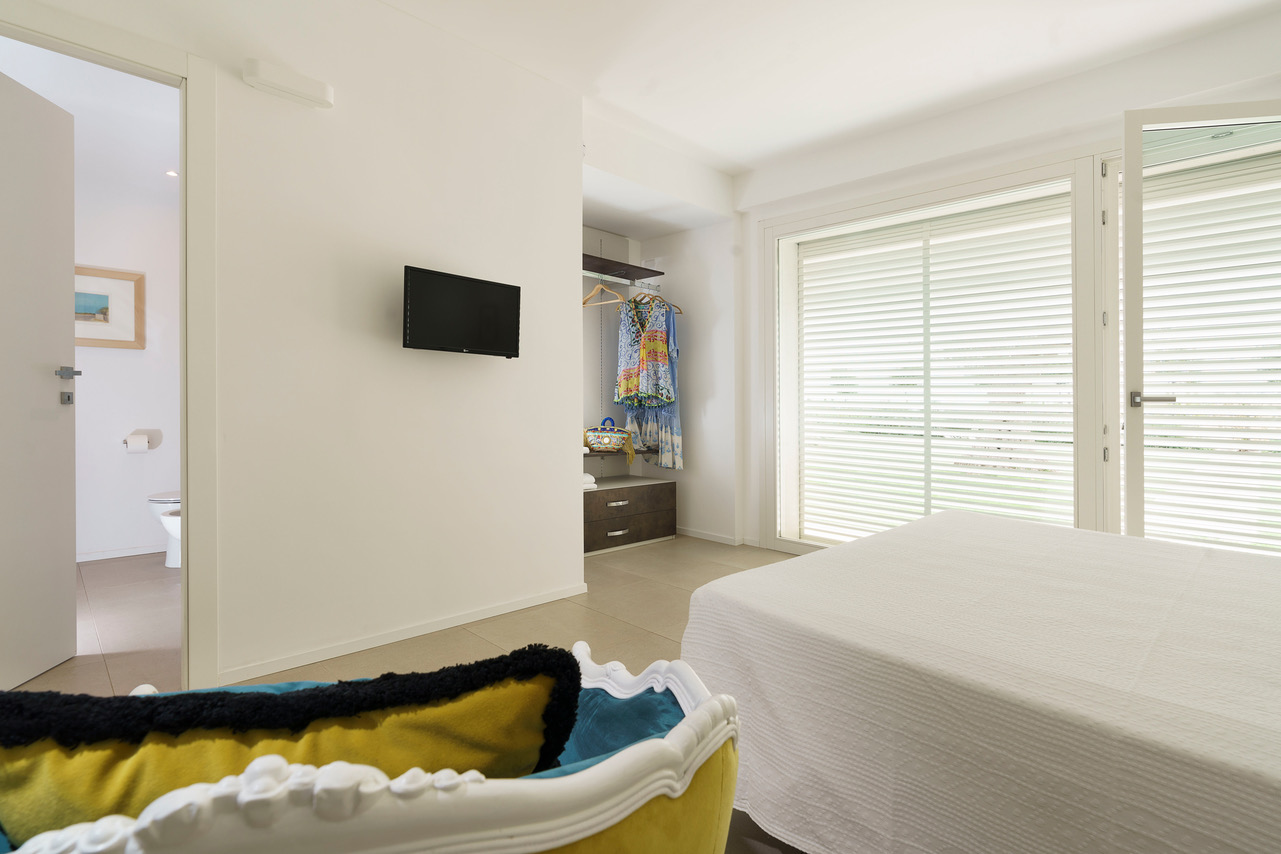 Quatre chambres doubles, toutes avec salle de bain, complètent l’intérieur de la villa.