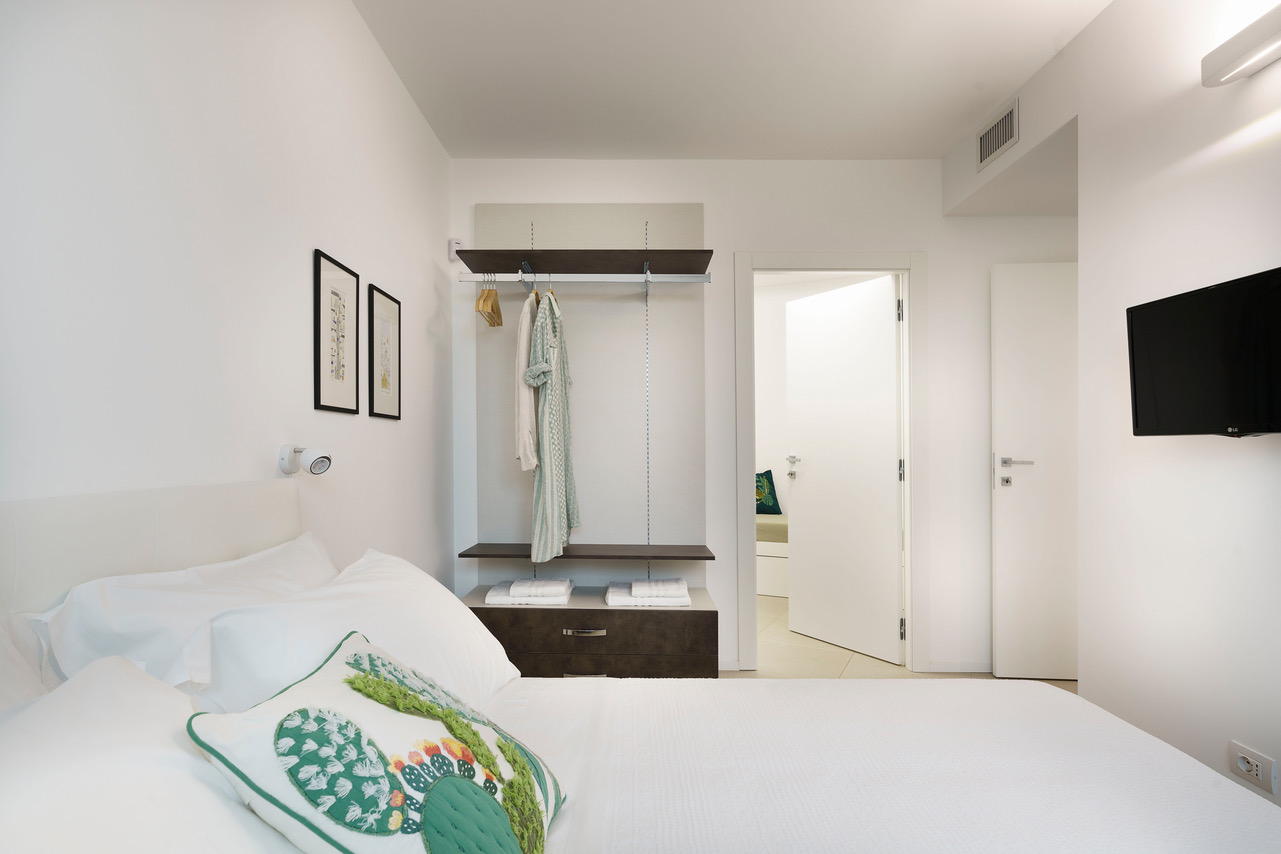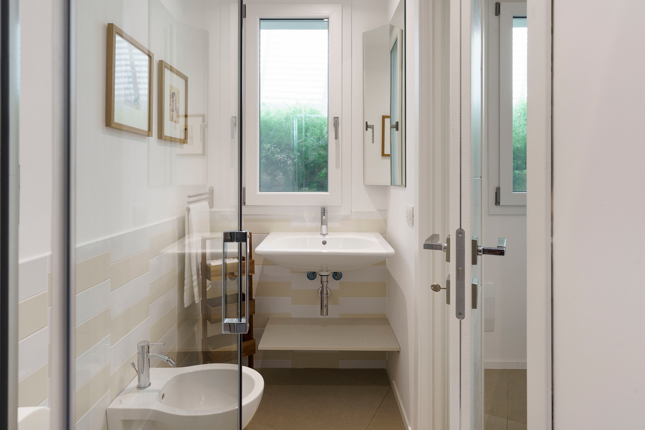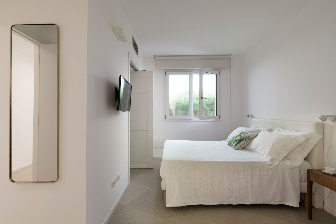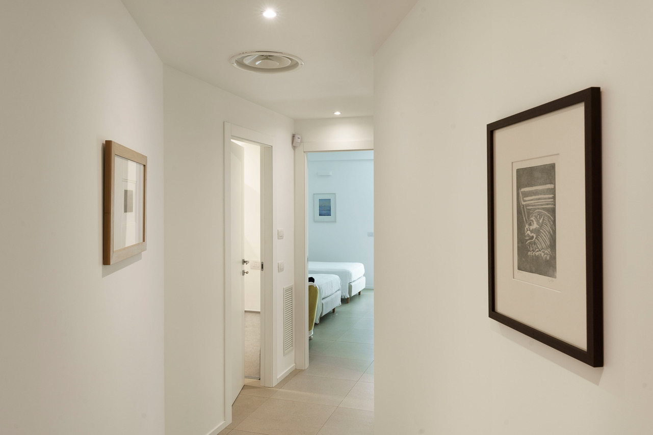 Quatre chambres doubles, toutes avec salle de bain, complètent l’intérieur de la villa.