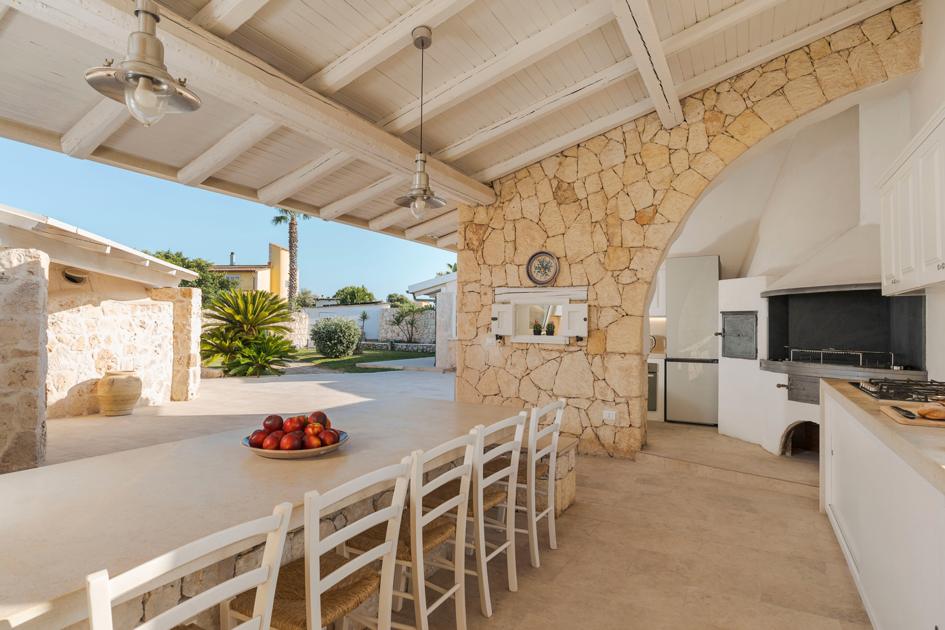 L’extérieur de la villa est aménagé pour offrir à ses hôtes un espace de détente et de convivialité. Son jardin soigneusement entretenu, agrémenté d’une pelouse verdoyante, encadre harmonieusement la propriété. De vastes terrasses permettent de profiter du climat méditerranéen, tandis qu’une terrasse couverte abrite un espace repas et une cuisine extérieure équipée d’un four, d’un réfrigérateur et d’un barbecue, idéale pour savourer des repas en plein. La proximité d’une falaise spectaculaire accentue le charme du lieu et renforce son caractère exclusif.