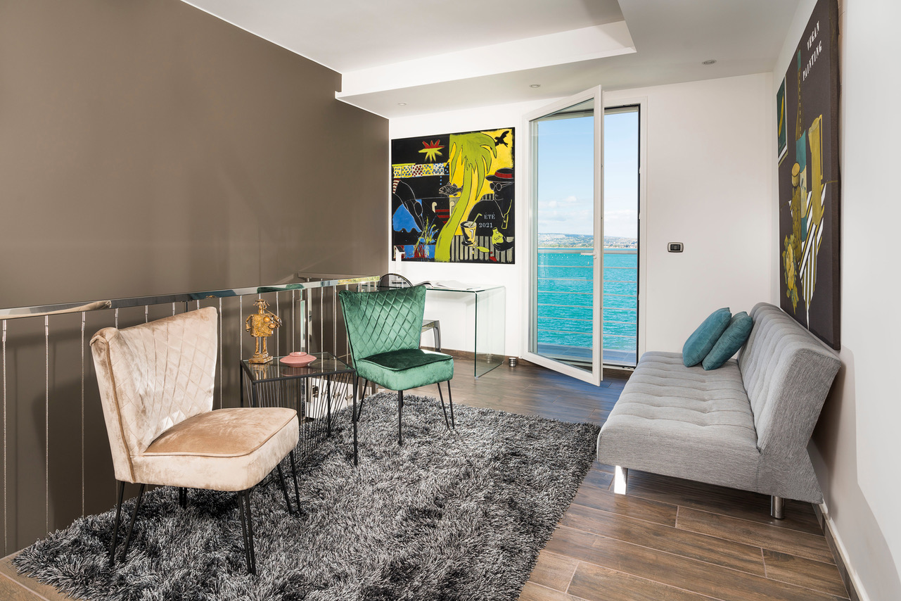Cette sublime maison posée face à la mer vous plonge dans un cadre idyllique pour votre séjour en Sicile. A quelques kilomètres d’Ortigia, elle domine l’une des plus belles côtes de la Sicile Orientale. Vue imprenable sur la baie de Syracuse, piscine à débordement, suites spacieuses et luxueuses, vous trouverez dans cette villa tous les atouts d’une maison de luxe. Ce standing va vous permettre de profiter de vos vacances dans le plus grand confort. A l’intérieur de la maison, la décoration est contemporaine et relevée par des touches de couleur. Distribuée sur deux niveaux, la villa est composée de 4 suites permettant d’accueillir au total 8 invités. Lumineuse et profitant d’une vue mer depuis plusieurs chambres et salles de bain, vous allez passer un excellent séjour, suspendu entre ciel et terre au cœur de la Sicile. Proche de Syracuse, vous pourrez partir à la découverte de cette villa inscrite sur la liste du patrimoine mondial de l’UNESCO. Son centre historique, l’île d’Ortigia, cache en elle des restes du temple d’Apollon, la fontaine Arétusa, et la très célèbre Piazza del Duomo. Se promener dans les ruelles de ce vieux centre-ville est comme faire un bond dans le passé pour se plonger dans son histoire. Pour des envies de baignades, les plages proches de Syracuse sont sauvages et offrent un paysage splendide. Comme par exemple Ognina, avec ses criques bordées d’eaux cristallines. Côté mer toujours, partez en excursion pour une journée en bateau et découvrez les grottes marines turquoises. Ce contraste de couleurs entre l’eau et la roche donne un tableau exceptionnel que vous serez ravis de pouvoir admirer.