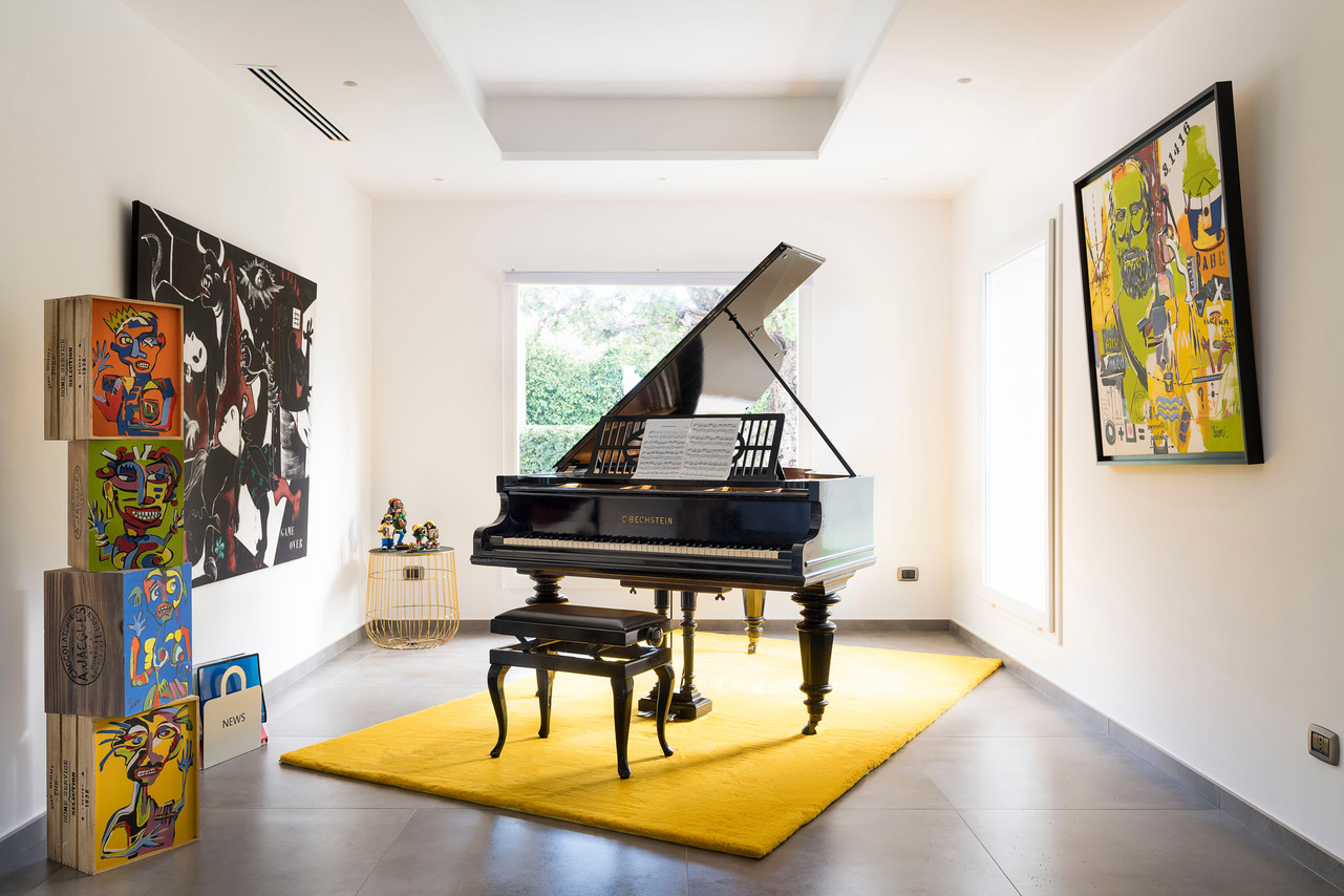 Salon avec télévision, piano