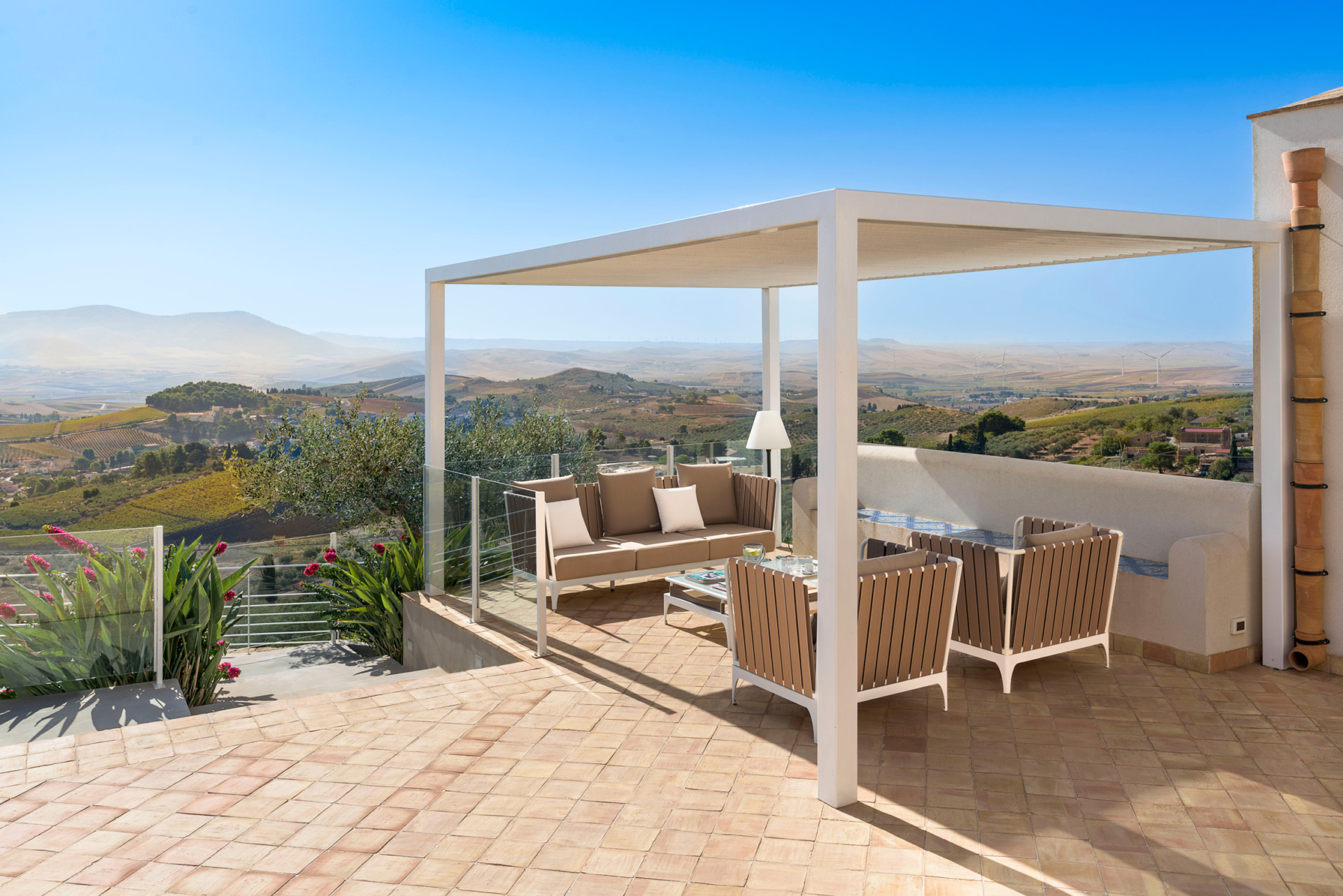 Entourée par des collines harmonieuses et de vertes vallées, cette villa de luxe avec piscine privée offre une vue splendide sur la campagne de Trapani. Il s’agit d’un havre de paix et de sérénité, où vous pourrez profiter pleinement du jardin, de la piscine à débordement et des grandes terrasses ensoleillées. La propriété a été construite en utilisant des matériaux naturels et en respectant l’architecture traditionnelle de la région. Idéale pour un séjour entre amis ou en famille, la villa est aussi le point de départ parfait pour explorer les sites touristiques de la région.