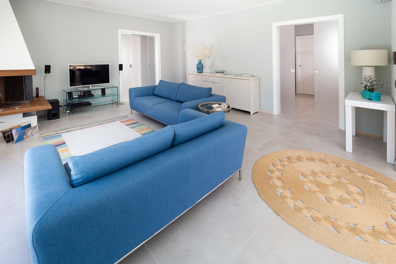 Salon avec cheminée, climatisation