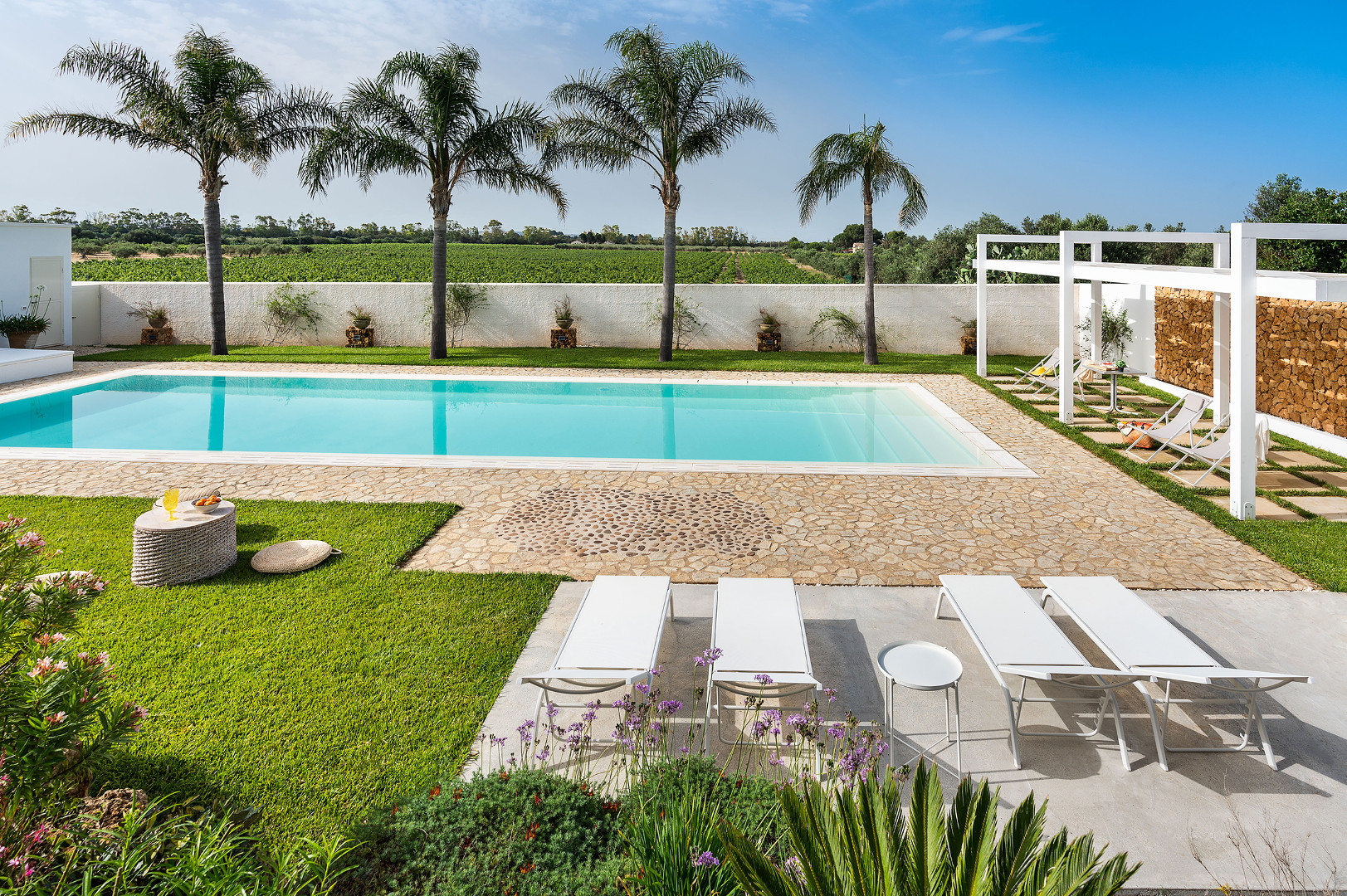 Palmiers, herbes aromatiques et vignobles en toile de fond, cette villa est le décor idéal pour passer des vacances à l’enseigne du far niente, du sport et de la découverte.