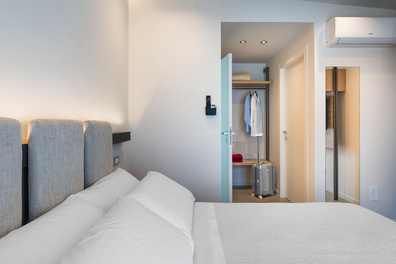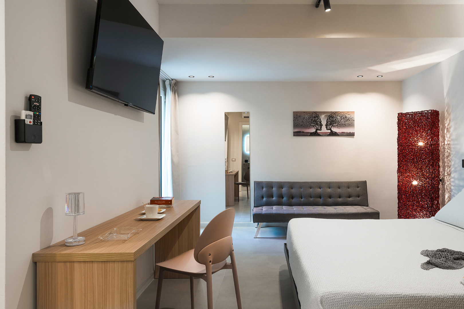 Chambre double avec lit 180, canapé lit (1 place), mini bar, télévision, climatisation, coffre fort et Salle de bain en suite avec douche