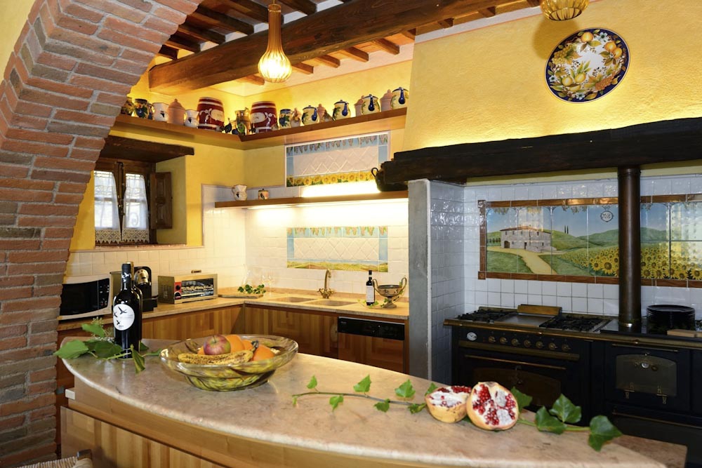 La maison, autrefois un moulin, a été savamment rénovée en créant de grands espaces à vivre qui rappellent les maisons familiales d’antan où il est bon de se retrouver pour partager de plaisant moments de convivialité. Le caractère toscan de l’ancienne maison en pierre a été pleinement préservé et chaque détail architectural a été mis en valeur tel que les plafonds aux poutres apparentes et les carreaux en terre cuite.