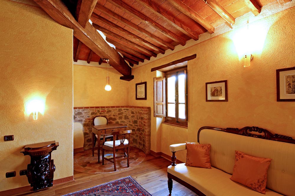 Cette ancienne demeure agricole est agréablement située dans la campagne Toscane entre Arezzo et le Chianti.