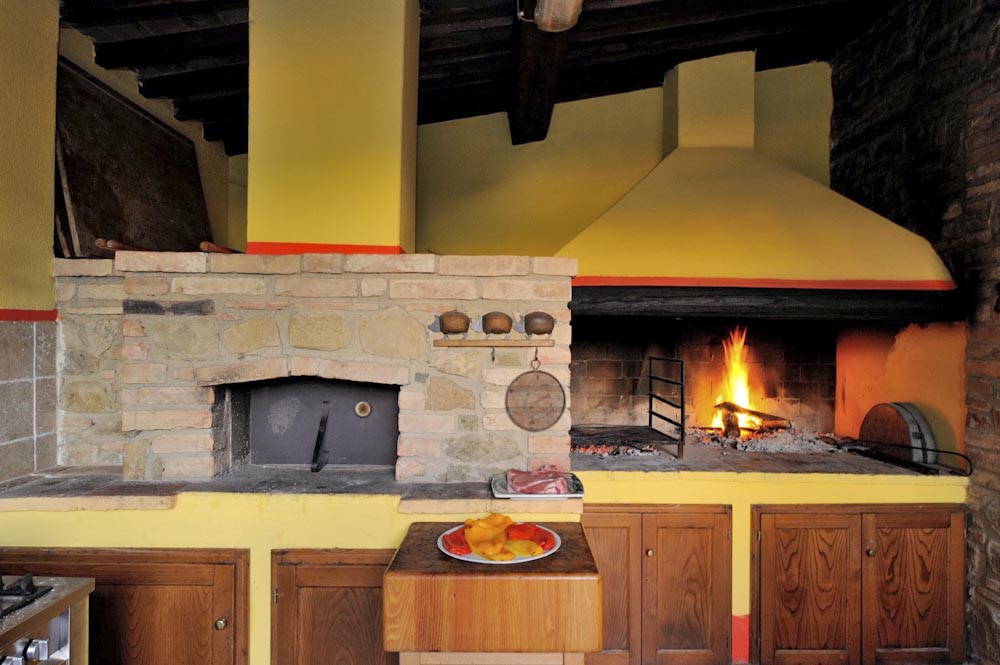 Cuisine avec four à bois, barbecue, table de cuisson à gaz, four électrique