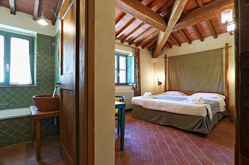 Chambre double et Salle de bain en suite avec douche, baignoire
