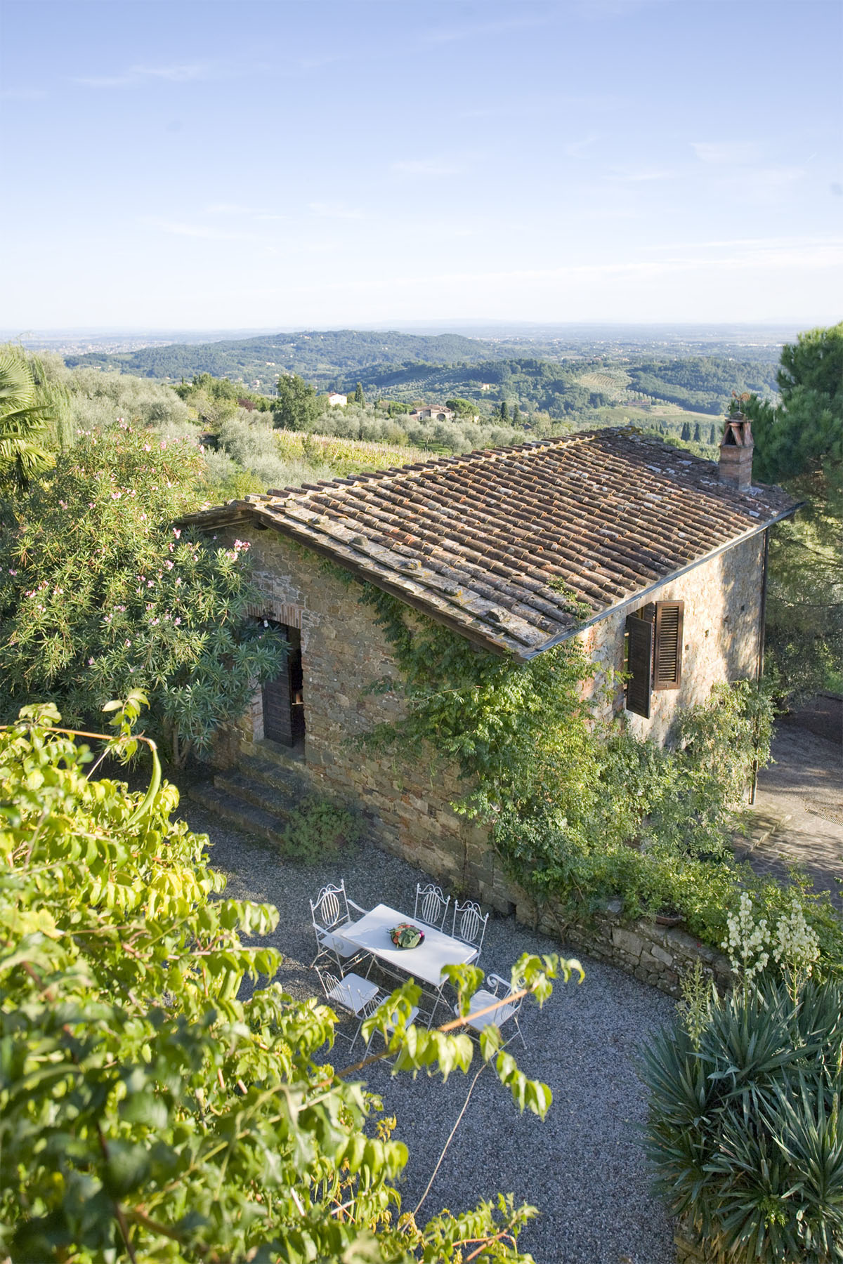 Cette belle propriété est située au milieu d'oliveraies et de vignobles sur les collines à l'est de Lucca. Elle est composée d'une très vielle maison en pierres datant probablement du XIIIe siècle et d'une maison d'amis. Des deux maisons, la vue sur la vallée est magnifique. Une particularité de la maison principale est sa belle loggia ouverte qui offre une vue splendide sur la vallée. Le propriétaire, architecte et designer de profession, a conservé le caractère de la structure d'origine et il a meublée la villa avec du mobilier d'époque. Il l'a également équipée de toutes les commodités modernes pour satisfaire aux besoins des hôtes.