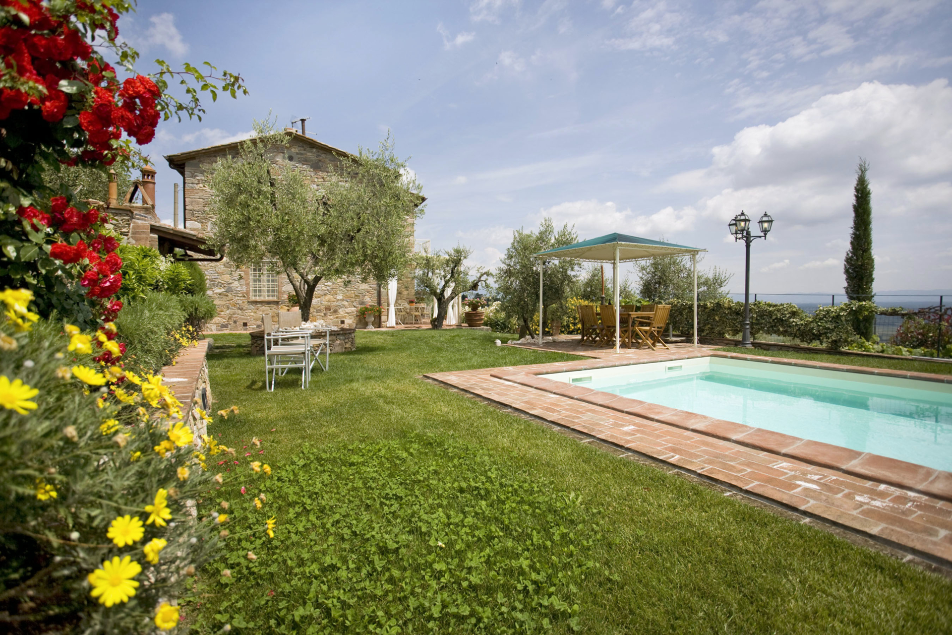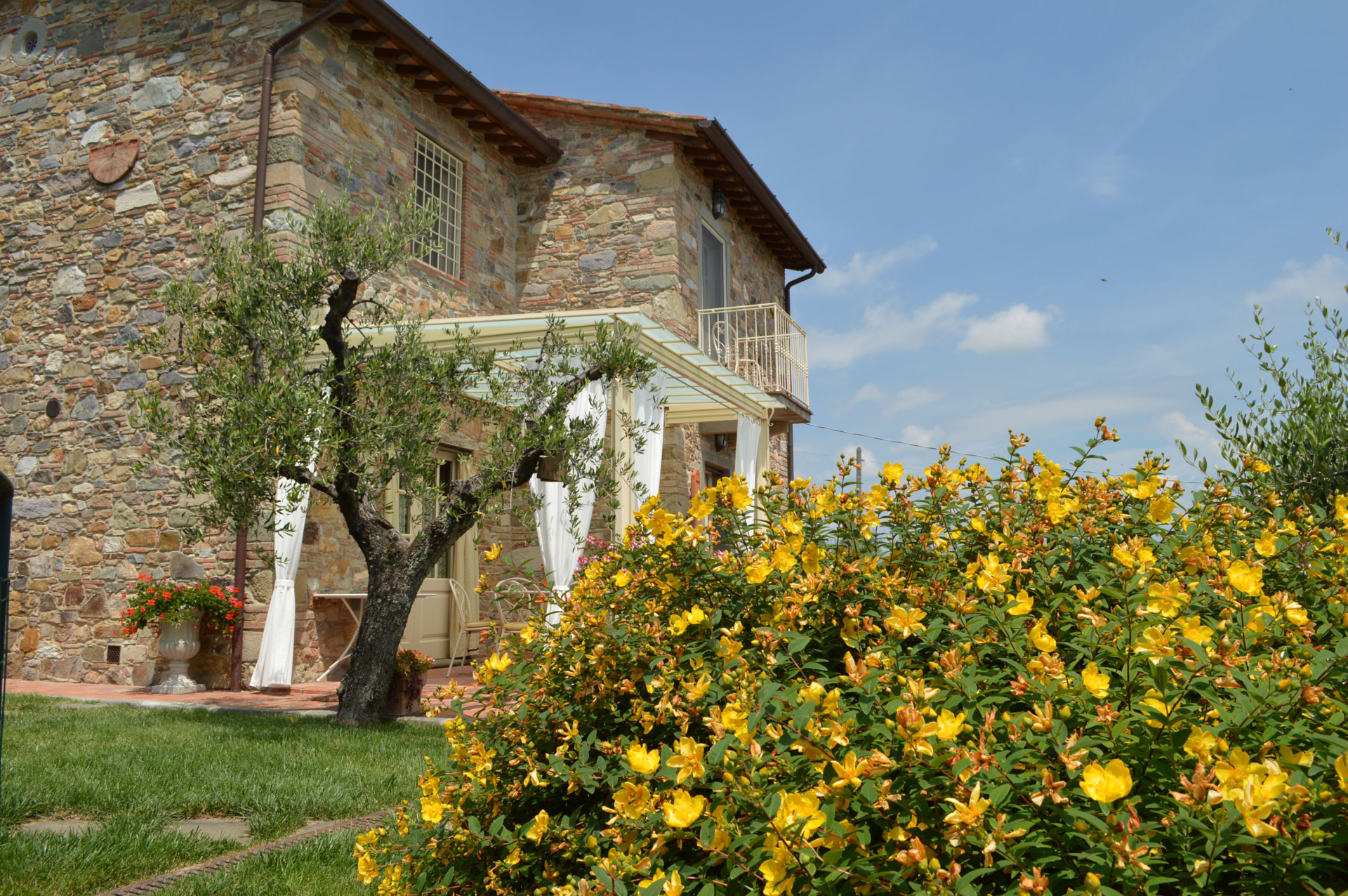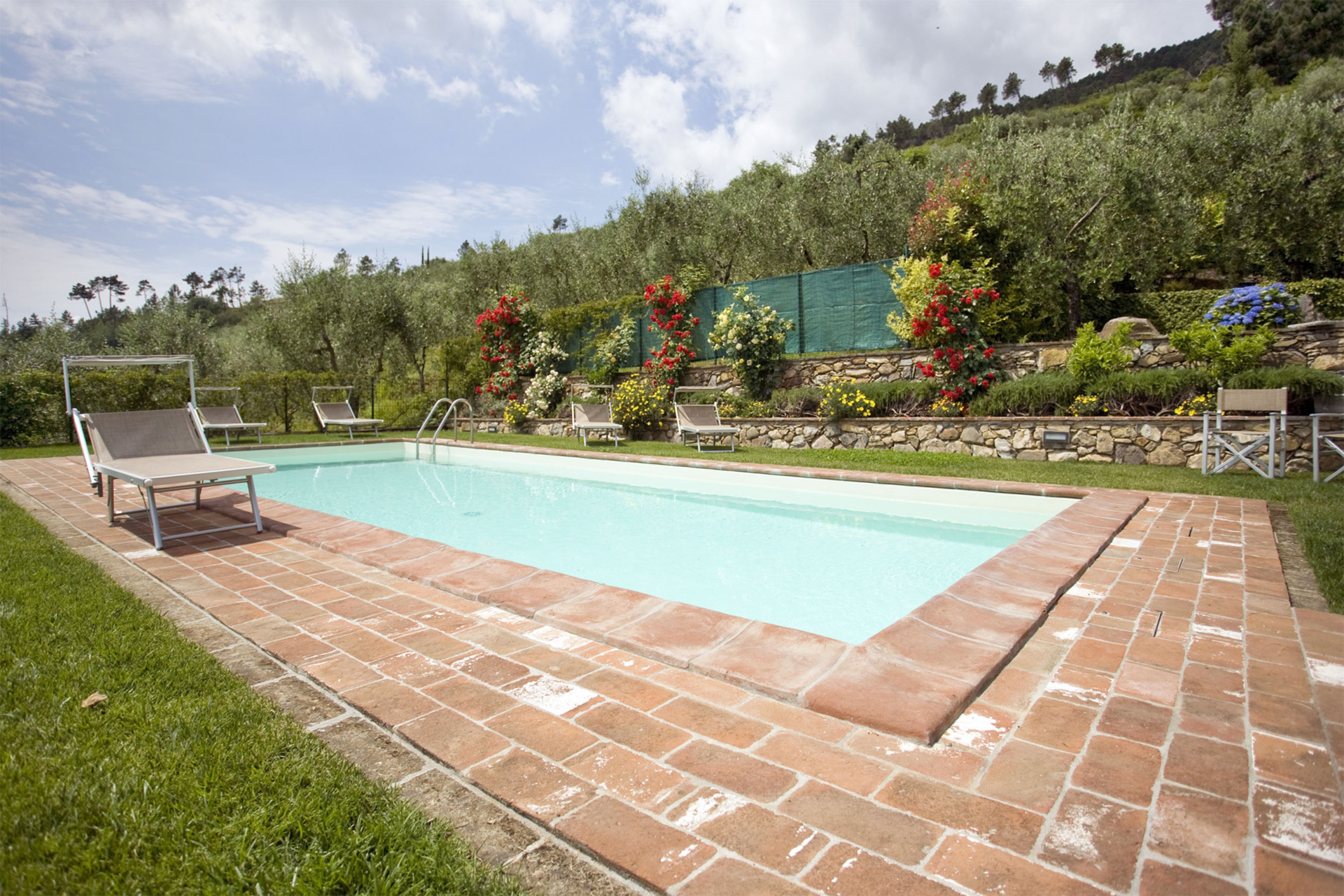 Sur les collines faisant face à Pise à l’ouest, et à quelques kilomètres de Lucca, cette maison jouit d’une position avec vue panoramique sur la campagne environnante connue pour son huile d’olive et ses beaux camélias. Non loin d’un petit village médiéval, cette maison est un lieu de convivialité que les propriétaires ont meublé de façon traditionnelle, tout en y intégrant le confort moderne. La cuisine a particulièrement été travaillée afin de pouvoir profiter du soleil au maximum: elle s’ouvre sur une terrasse avec four à pizza et mobilier de jardin. Ce lieu est un havre de paix, idéal pour qui recherche la quiétude tout en étant à coté des commodités et des sites incontournables de la Toscane.