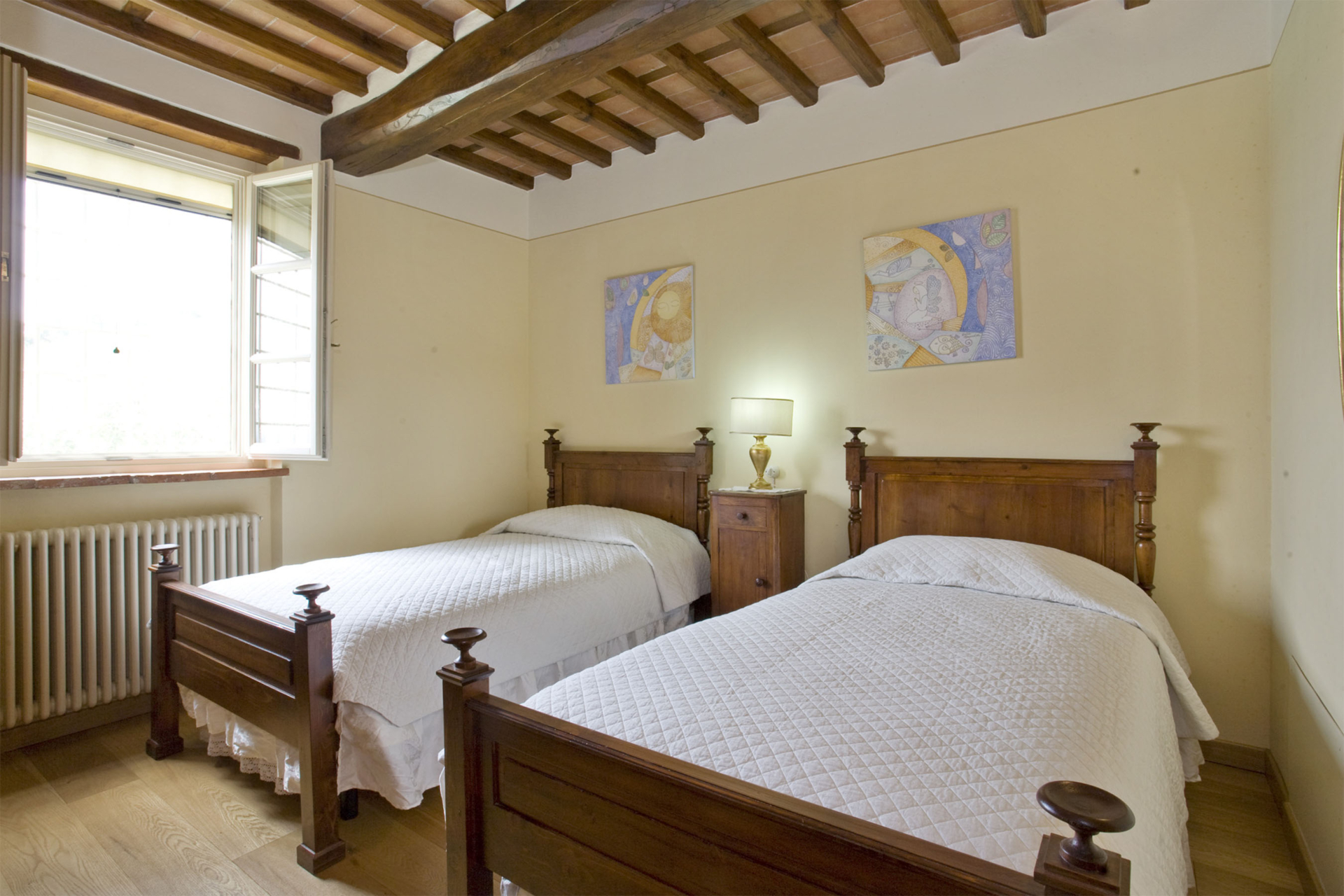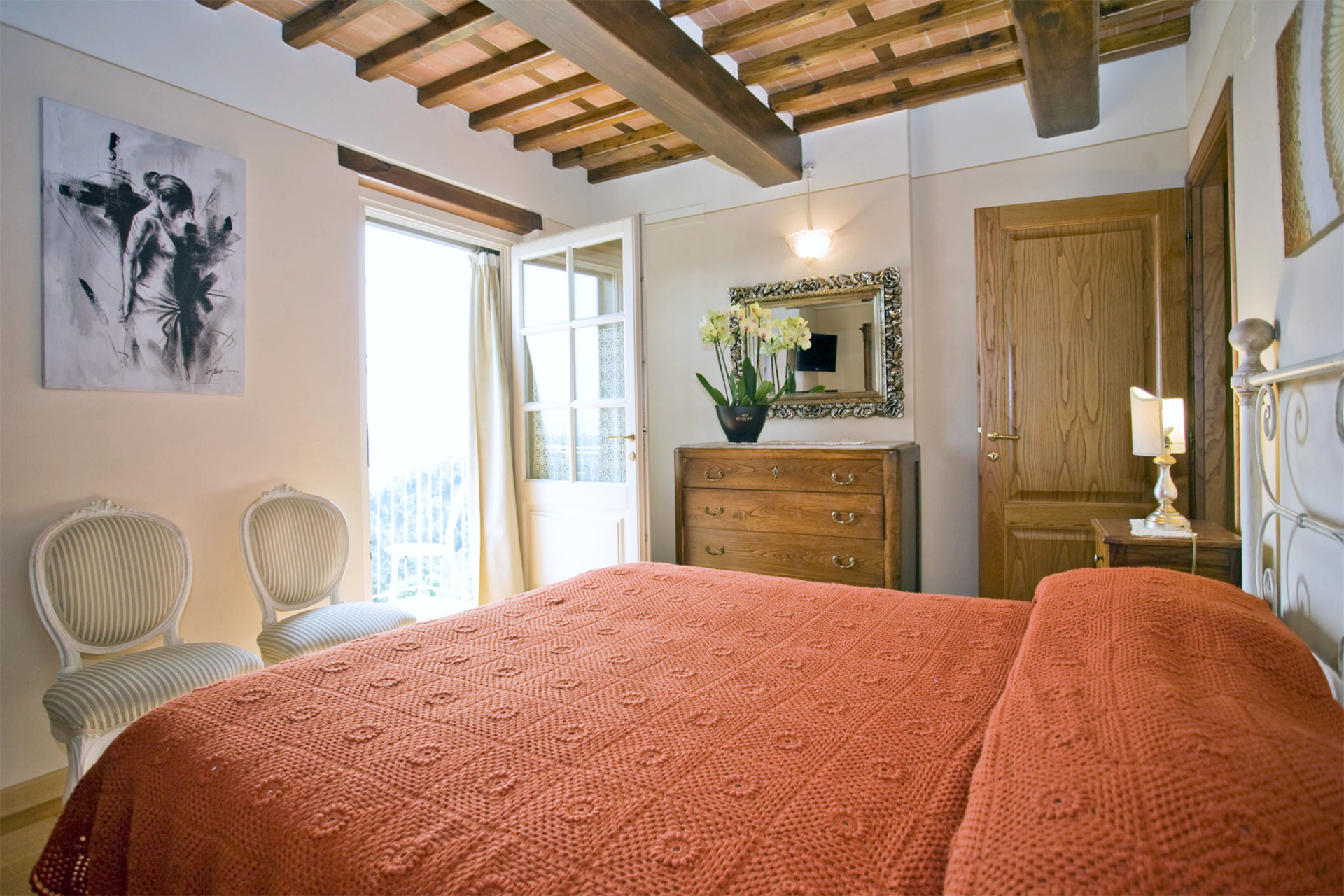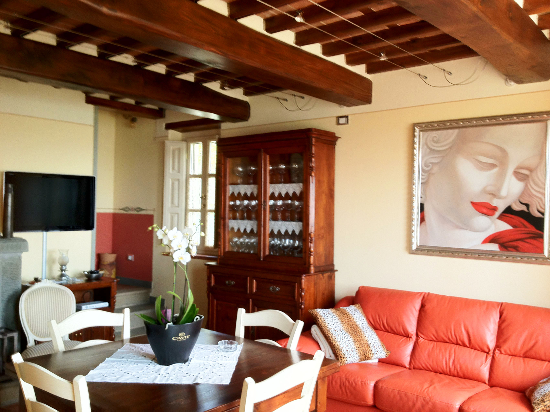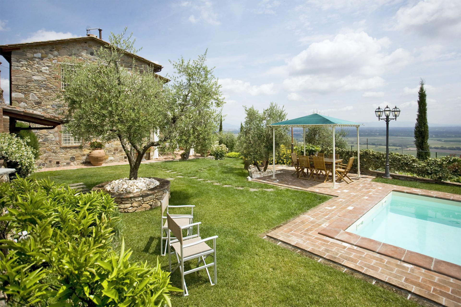 Sur les collines faisant face à Pise à l’ouest, et à quelques kilomètres de Lucca, cette maison jouit d’une position avec vue panoramique sur la campagne environnante connue pour son huile d’olive et ses beaux camélias. Non loin d’un petit village médiéval, cette maison est un lieu de convivialité que les propriétaires ont meublé de façon traditionnelle, tout en y intégrant le confort moderne. La cuisine a particulièrement été travaillée afin de pouvoir profiter du soleil au maximum: elle s’ouvre sur une terrasse avec four à pizza et mobilier de jardin. Ce lieu est un havre de paix, idéal pour qui recherche la quiétude tout en étant à coté des commodités et des sites incontournables de la Toscane.