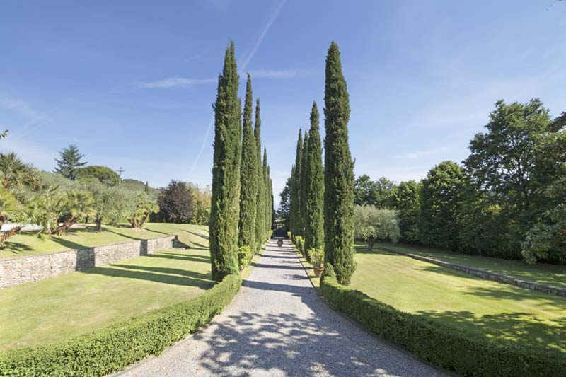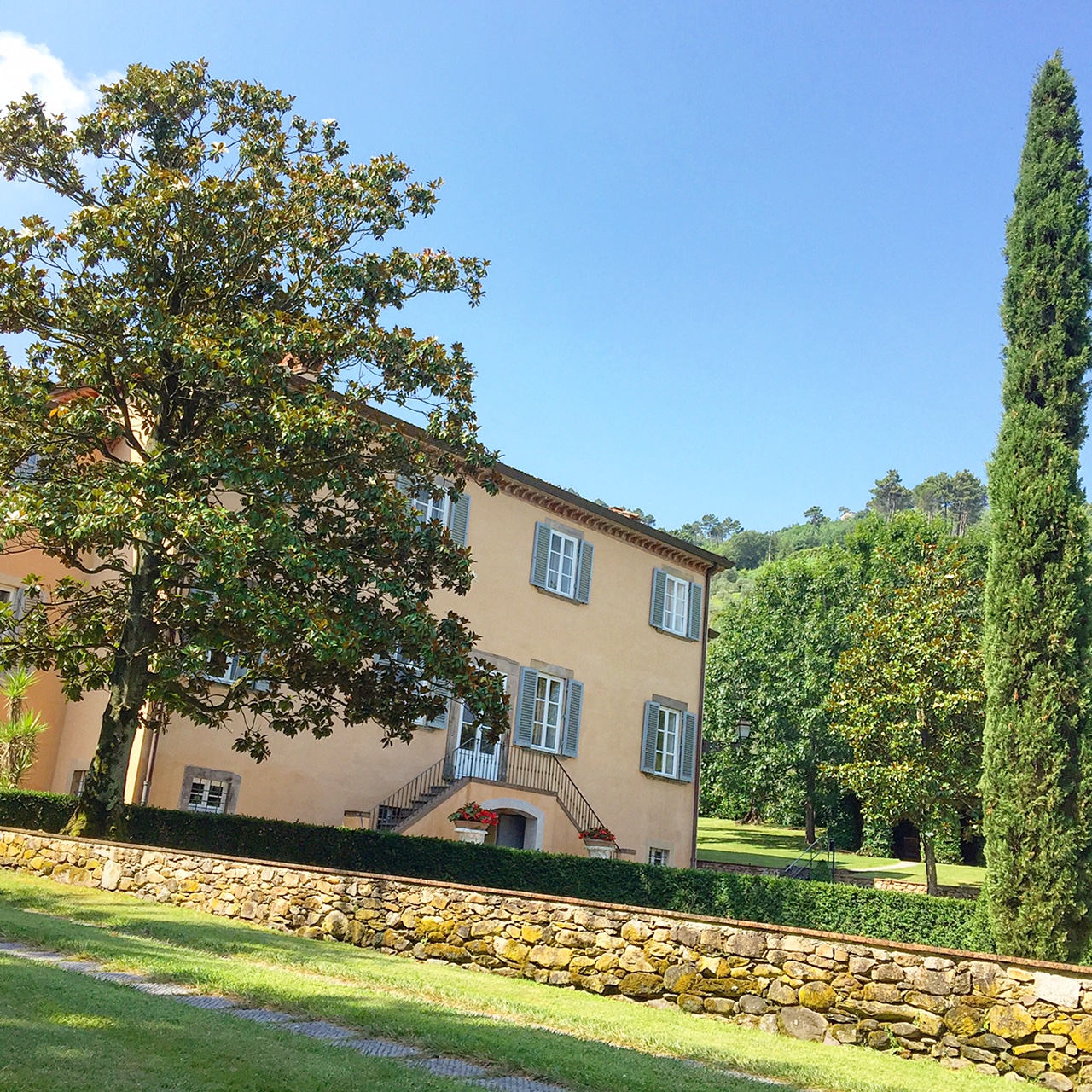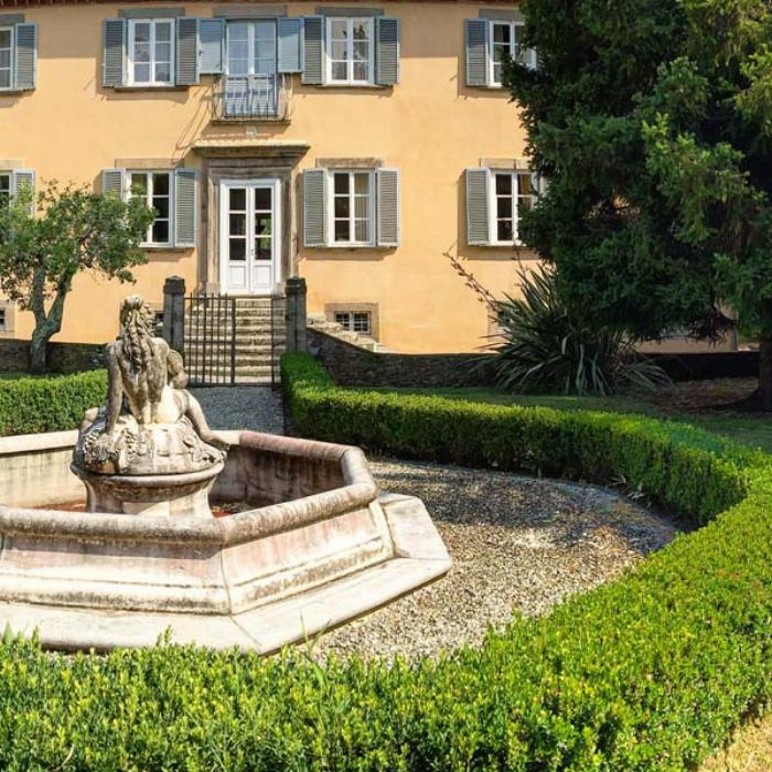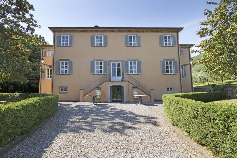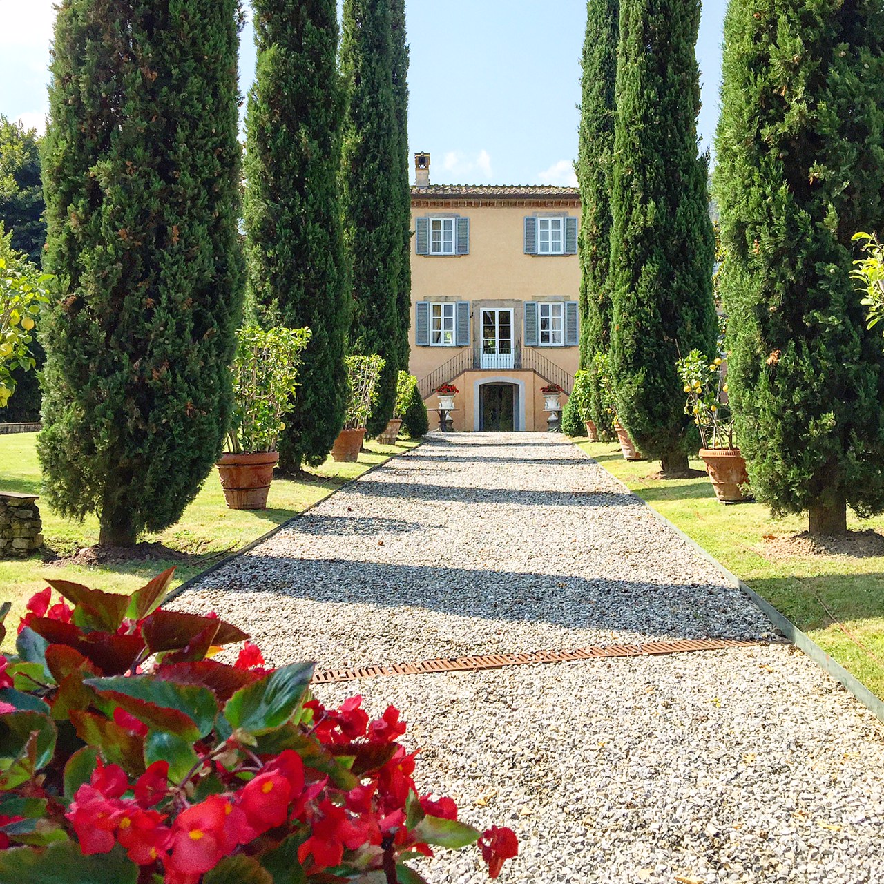 Une fois passé le portail de la propriété, un véritable décor de carte postale s’offre à vous et rappelle les fastes d’antan. Une allée bordée de cyprès, une somptueuse demeure du 18ème siècle entourée d’un jardin à l’italienne, et en arrière plan les montagnes et collines de Lucca.