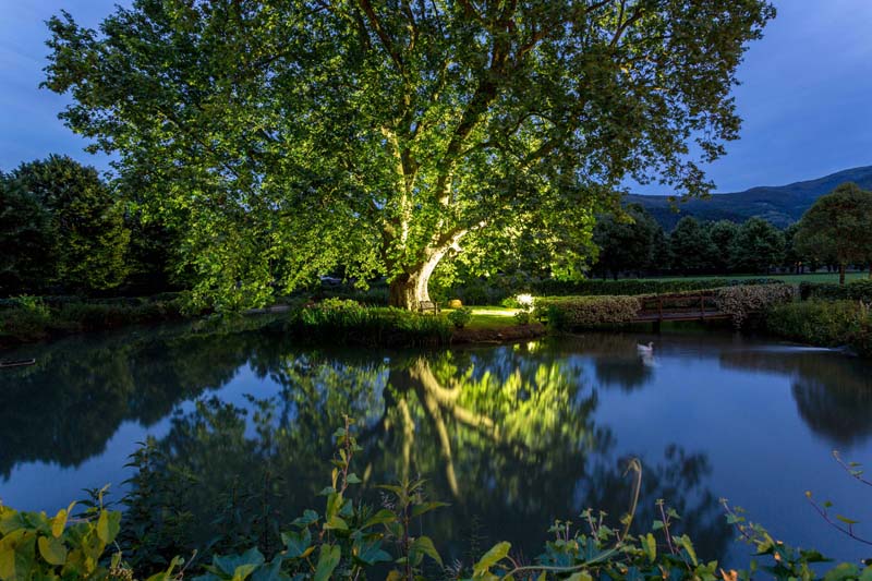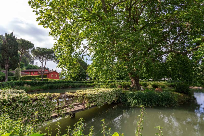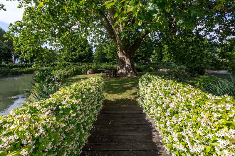 A l’avant de la maison un étang complète le charme romantique de cette propriété. Au centre de l’étang une petite île gardée par un majestueux platane centenaire, pour la rejoindre vous n’aurez qu’à traverser le pont en bois recouvert de jasmin.
