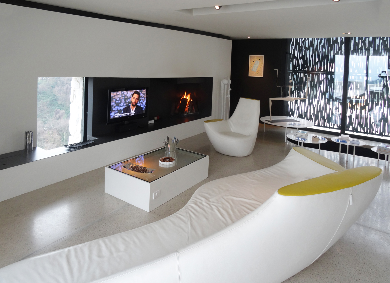 Salon avec cheminée, télévision
