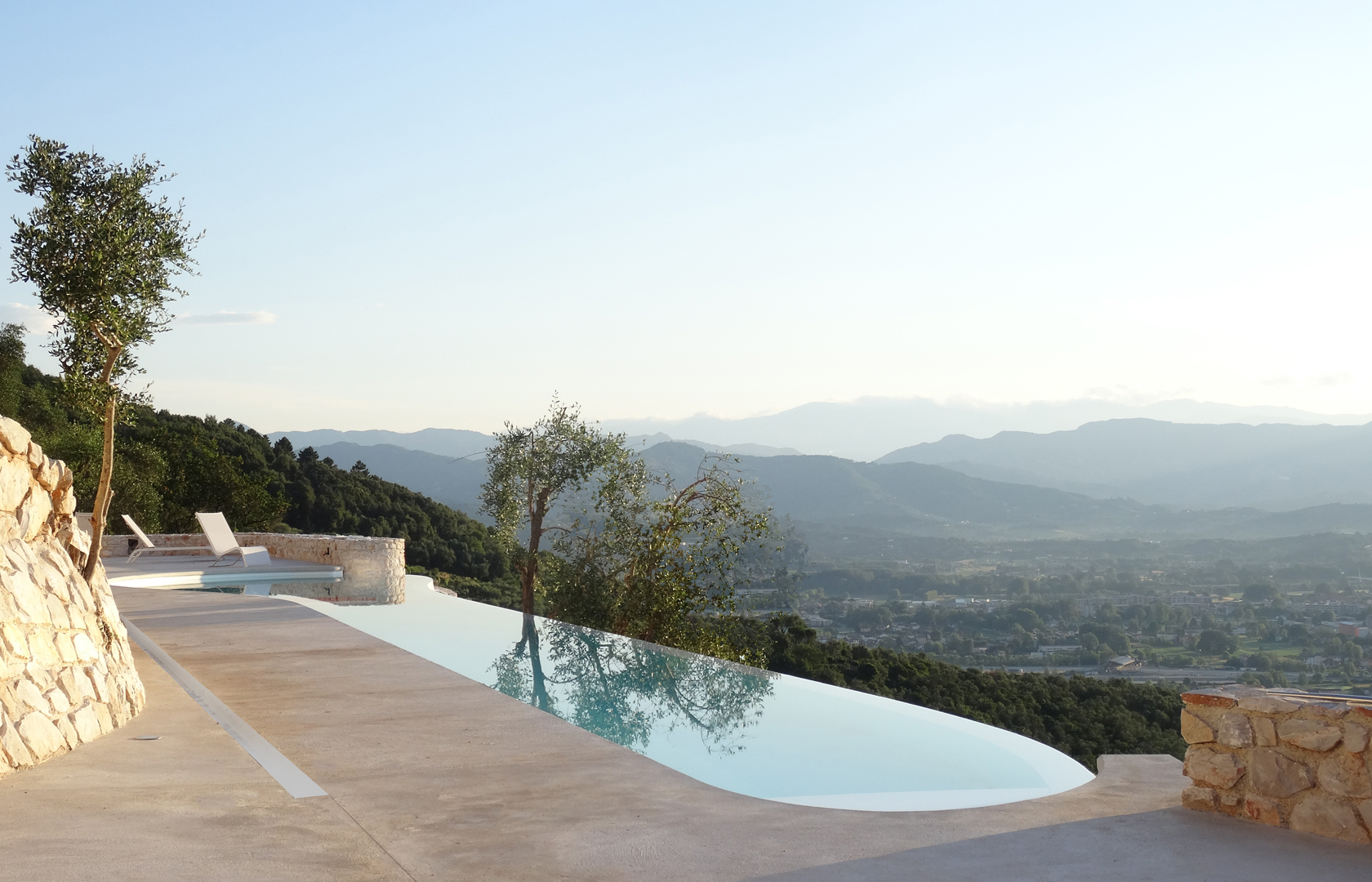Terrasse avec piscine de 16m de long et coin hydromassage avec vue à couper le souffle