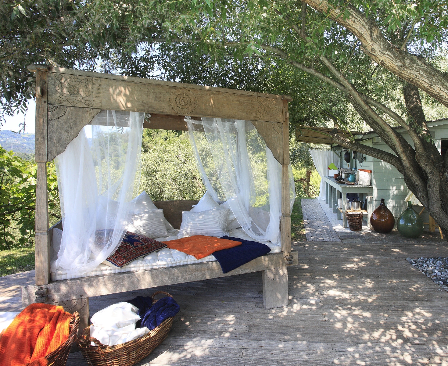 Dans un jardin ou les senteur de lavande, rose et romarins se succèdent en fonction des saisons: un petit coin de paradis à l’ombre d’un chapeau de paille.