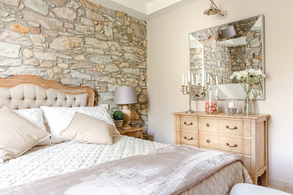 Chambre double avec accès terrasse et Salle de bain en suite avec douche, sèche cheveux