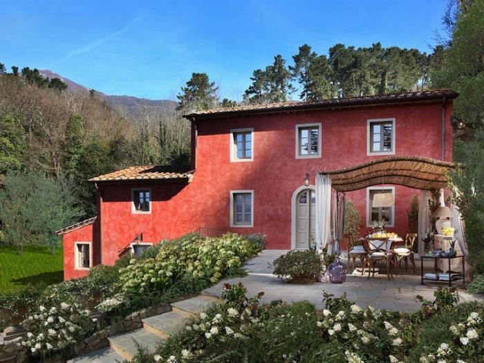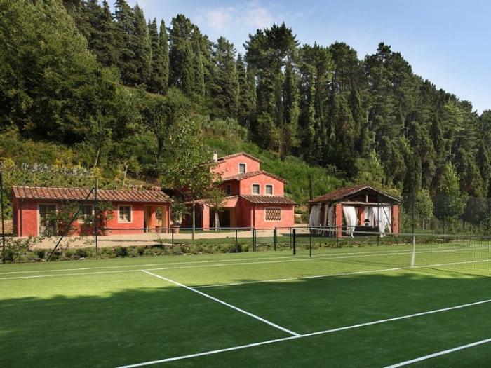 Cette jolie maison toscane à la façade rouge remplit absolument tous les critères du style architectural de la région. Situé à Camaiore en Toscane, vous serez au coeur d’une belle campagne reposante. Ici, vous trouverez une âme tellement accueillante que vous vous sentirez très vite comme chez vous. Passez le pas de la porte et découvrez la décoration raffinée au style Shabby Chic. Le côté toscan traditionnel des lavabos anciens, les poutres apparentes, le sol en terre cuite n’a pas été oublié et est somptueusement mis en valeur. Vous serez ici au plus près de la tradition toscane la plus authentique. La maison, entièrement immergée dans un environnement verdoyant, est dotée d’une belle piscine de 16x8. Un terrain de tennis est à votre disposition et vous permettra de partager des moments en famille, raquettes en main. Composée de quatre chambres et tout autant de salle de bain, elle est la maison de vacances par excellence pour passer du temps avec ceux que vous aimez. A l’extérieur, une terrasse couverte abrite une table à manger pour profiter des repas al fresco. Proche de Pise, vous ne manquerez pas de rendre visite à la fameuse tour. La Piazza del Duomo, connue pour la richesse de son art médiéval européen et ses structures architecturales, vous impressionnera à coup sûr. Partez sur les chemins de la Toscane et sur la route des vignobles pour déguster les vins italiens très réputés. Cette escapade vous offrira de beaux panoramas sur les magnifiques paysages toscans. Pour les envies de plage, Viareggio se trouve à proximité. Cette grande étendue de sable est l’endroit parfait pour des activités nautiques ou du repos au soleil.