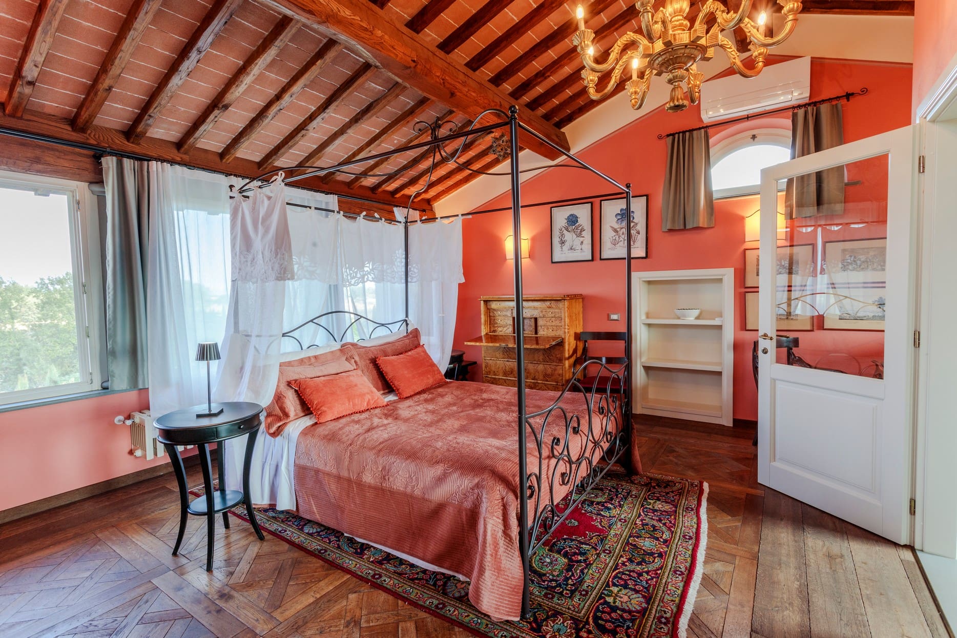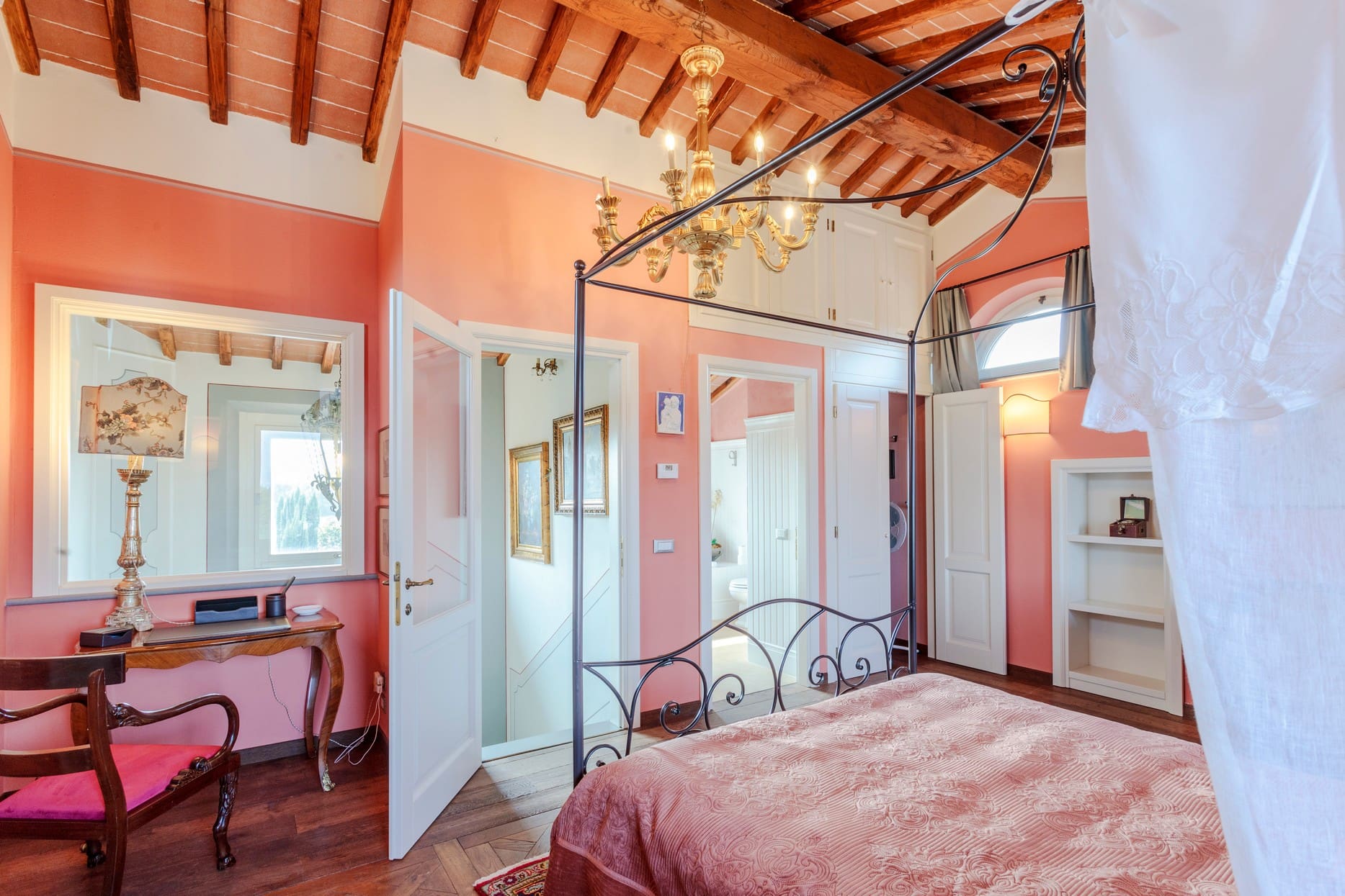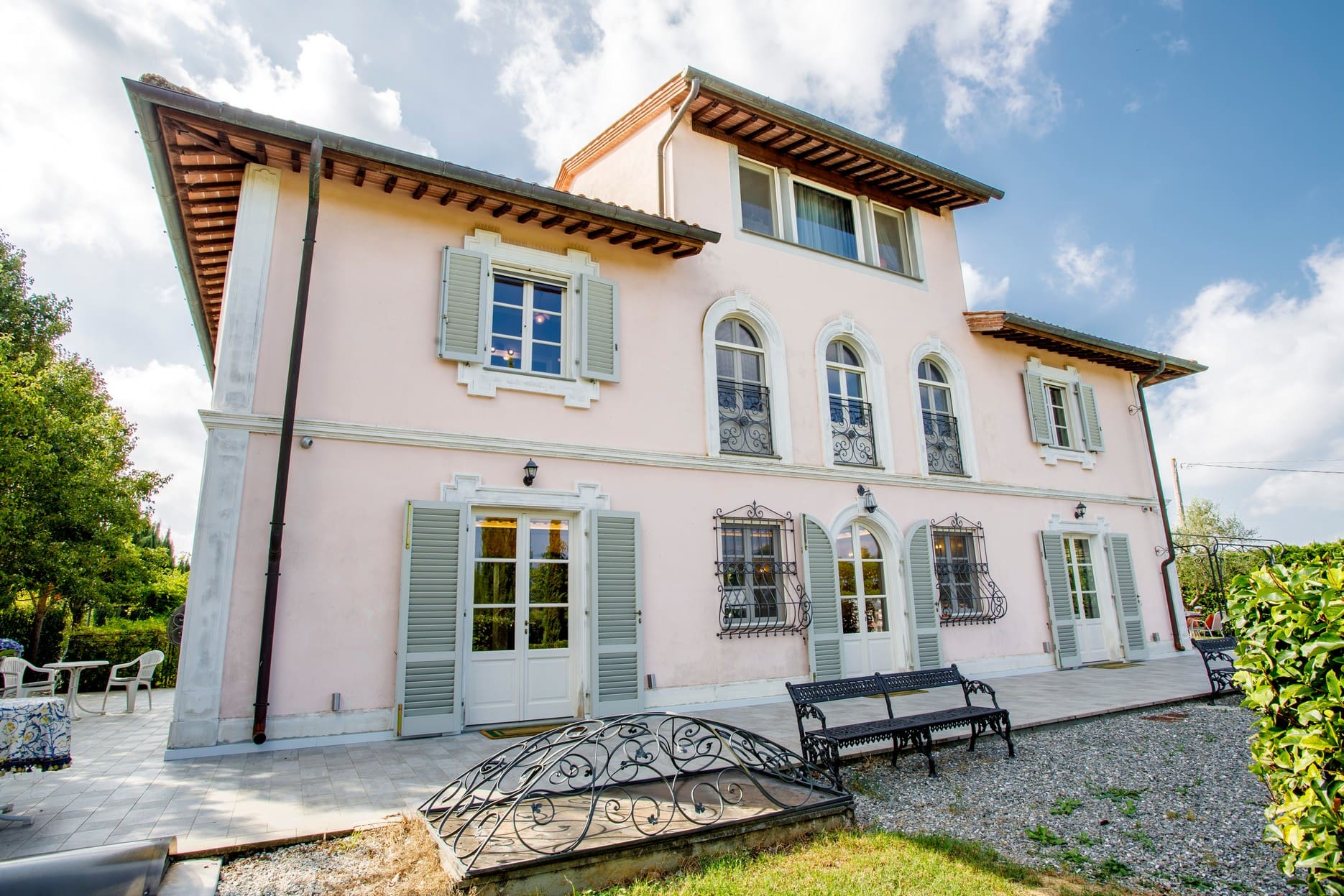 Cette élégante maison de luxe se trouve au cœur de la Toscane, dans l’Italie la plus authentique. Sa couleur rose pâle contraste joliment avec la verdure environnante, et vous plonge dans un univers presque féerique. Les cyprès ponctuent la vue et agrémentent le grand terrain de 7000m2. Récemment rénovée, elle est parfaitement équipée pour que vous ne manquiez de rien et bénéficiez du meilleur confort. Certaines fenêtres sont voûtées et rappelle ainsi l’élégance de sa façade. La décoration est très sobre et dans les tons pastel. La luminosité que l’on retrouve dans chacune des pièces confère à cette villa une ambiance familiale particulièrement agréable. Très facile à vivre, elle est idéale pour les grands groupes ou les familles souhaitant des retrouvailles au soleil. À l’extérieur, une belle piscine à hydro massage de 16 m x 4 m est joliment positionnée sur le côté de la maison. Soyez sûrs que dans cette villa, vous trouverez tout ce dont vous aurez besoin pour un séjour sous le signe du repos. De plus, vous bénéficierez d’une superbe position stratégique vous permettant de visiter Lucca facilement, cette ville aussi appelée la ville des tours. Partez à la découverte de ce patrimoine historique qui fait l’identité de Lucca. Gravissez les marches de la Torre delle Ore pour découvrir la ville depuis le ciel. Pour terminer votre circuit visite des tours, n’oubliez pas d’aller voir la plus célèbre d’Italie, celle de Pise ! Des excursions en vélos sont aussi proposées dans la région. Partez en vélo tous ensemble et découvrez tous les secrets de la Toscane. Plusieurs arrêts sont prévus pour déguster les spécialités locales dont le vin et le fromage.